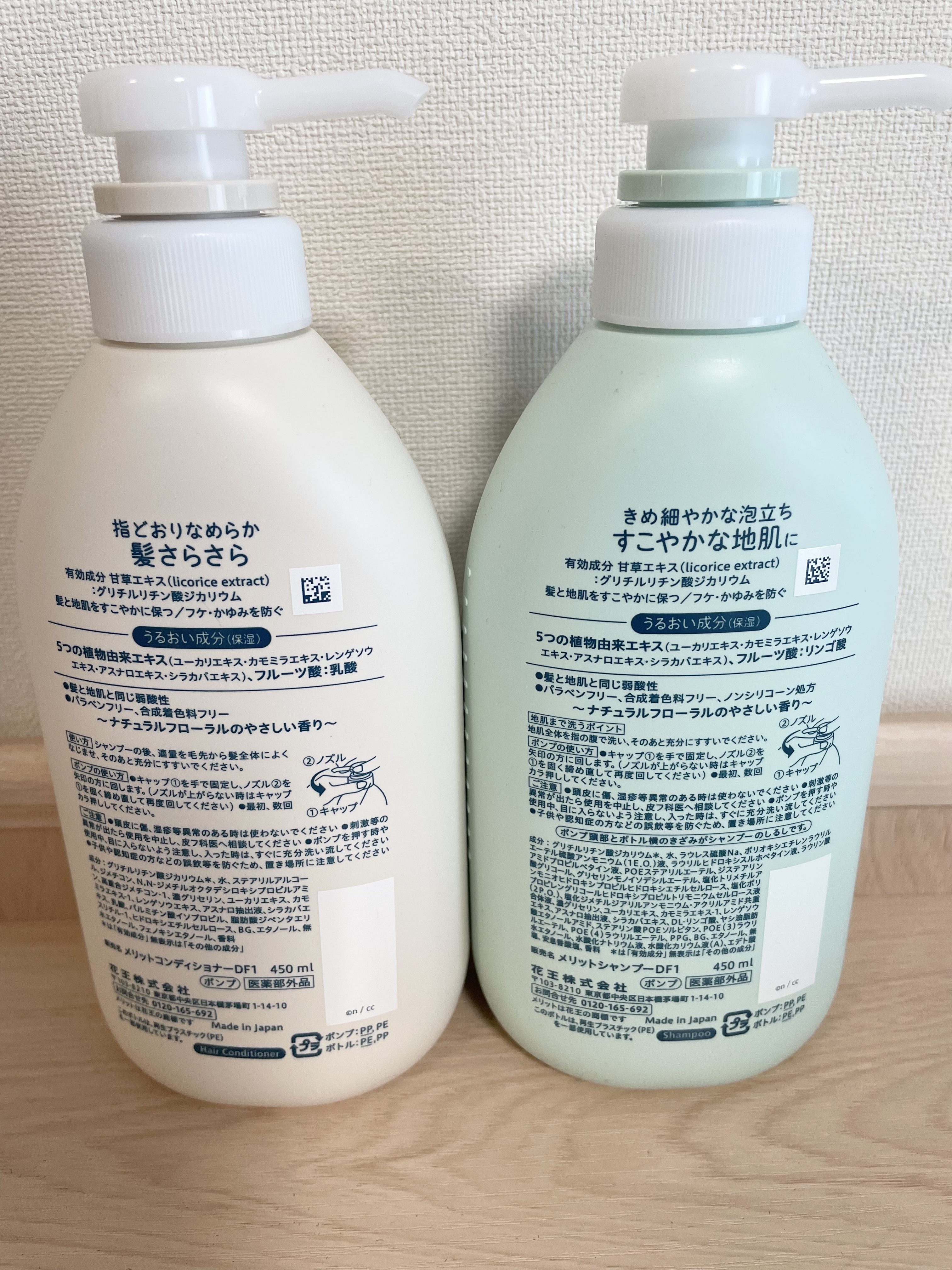 メリット シャンプー・コンディショナー✨家族みんなで使える🎵メリットシャンプーの泡は、髪の根元まで届きやすい、きめ細かでふわふわの泡😆地肌のうるおいを守りながら、落としにくい余分な皮脂汚れまでふわっと浮かせ、しっかりオフ🎵根元から髪さらさら✨軽い感触の気持ちよさが一日中続きます🌿さらに、ホコリや花粉など、汚れを髪につきにくくする新技術「ダストシールド技術」を採用💡髪や地肌と同じ弱酸性✴️ノンシリコーン処方❇️※シャンプーのみ地肌の生まれ変わりのリズムを整える植物由来リコリスc*配合で、フケや痒みを防ぎます💡髪をしっかり予洗いしてから、シャンプーを馴染ませると、本当にあっという間にふわふわときめ細かい泡に♡しっかりと地肌も泡が届いて洗えている感じ😊泡立ちも良いけど、泡切れも良くて、するーっとラクに濯げるのも嬉しい🎵ナチュラルフローラルの香りは優しく爽やかな香りで老若男女誰が使っても違和感のない、甘すぎない香り🌿まさに家族で使えるシャンプー😊ホコリや花粉が髪に付きにくいのも良いですよね😉
