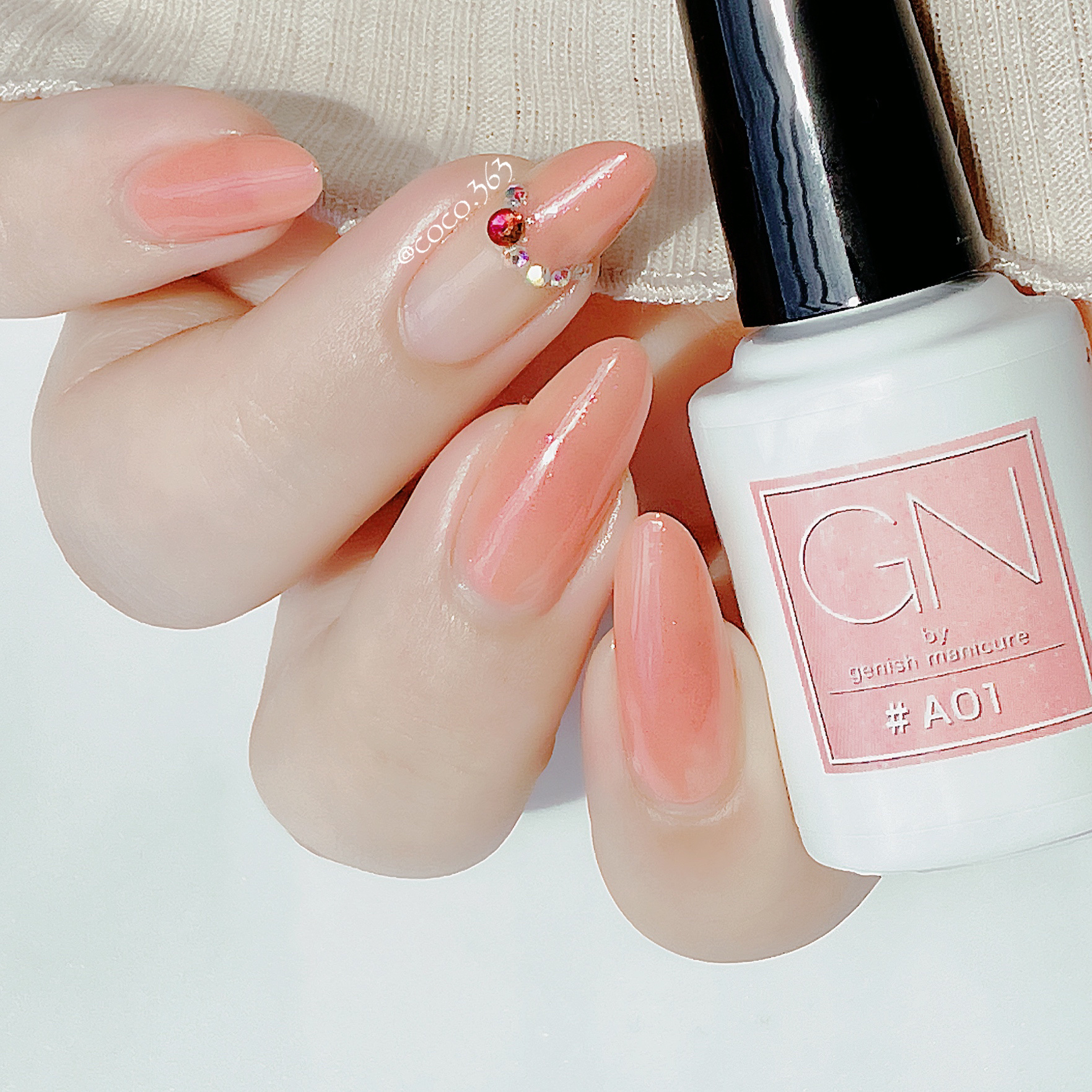 シアーな発色の大人ピンクで、アレンジにも使いやすい万能カラー💕 微細なピンクラメ入で上品な手元に仕上がります✨ 1度塗りだとほんのり色づく程度なので、自爪を自然に綺麗に見せてくれます☺️ 今回はトップコートもジーエヌマニキュア様よりご提供いただいたので使用してみました☺️ ぷっくりつやんっと綺麗な仕上がりでこちらもおすすめ❤️