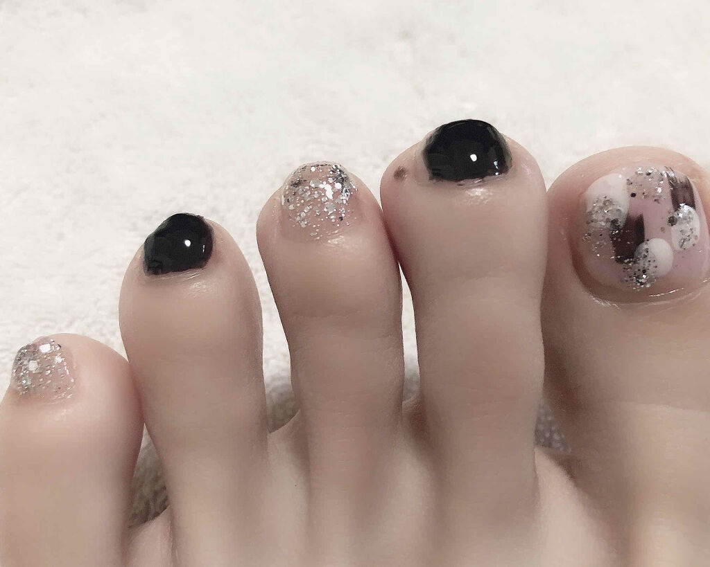 こんにちは(ˊo̶̶̷ᴗo̶̶̷`)♡今日から4連休!!大きなお出かけの予定はないのですがのんびり楽しく過ごせたらなと思っています☺️!そんな連休前夜の昨日の夜中、恒例のネイルチェンジをしました💅✨今回はモノトーン中心でアクセントでシルバーを使ったニュアンスフットネイルにしてみました🐼🐾ニュアンスネイル、あんまりやった事がなかったのですがゆるーくできてとっても楽しかったです😍❣️色味も大好きなモノトーンにしたのでしばらくはフットネイルを見る度ににやつきそうです(≖ᴗ≖)笑全部プチプラでできて今回も大満足です❤それでは今回も閲覧ありがとうございました◎#セルフネイル#フットネイル#モノトーン#プチプラ#ネイルホリック#CANMAKE#pa#セリア