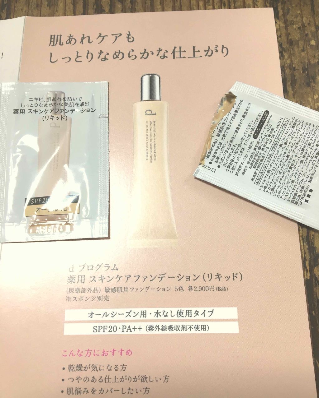 しっとりなめらかな肌にしてくれます💕💕 薬用スキンケアファンデーションなので、ニキビ肌の方でも使えるところや、SPF20 •PA++はdプログラムの良い所!! サンプルなので使い切れるのも良いと思います🫶🏻