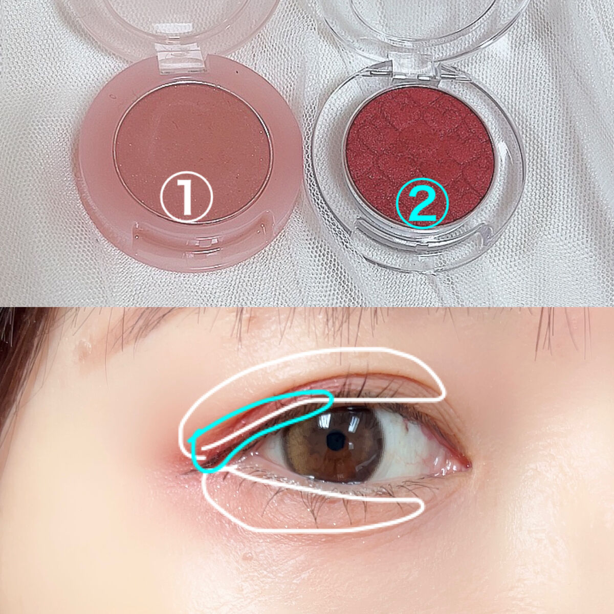 ピンクレッドメイク/♡••┈┈┈┈┈┈┈┈••♡#エチュードルックアットマイアイズRD302♡••┈┈┈┈┈┈┈┈••♡レッドはこちらを使いました。かなり濃いめの発色いい深みレッドなので、濃くなりすぎないよう注意して塗りました⚠️密着もしてくれるしプチプラですが粉質良いと思います。ピンクの部分は、ルックアットマイアイズ<ヴェールブリーズコレクション>ルックアットマイアイシリーズBR435クリアマインドです。こちらいつかの限定でしたが、ほわっとしていてめちゃくちゃ可愛い💕①ピンクをアイホールと涙袋に塗ります。②レッドを上の目尻に方に塗ります。アイライナーやマスカラをして完成👏エチュードの単色はいろんなカラー揃ってるしプチプラだし使いやすくて気に入っています!#アイシャドウ#単色アイシャドウ#シングルアイシャドウ#プチプラ#プチプラコスメ#レッドメイク#ピンクメイク#韓国コスメ#ナチュラルメイク#LIPS投稿アワード1000万DL記念