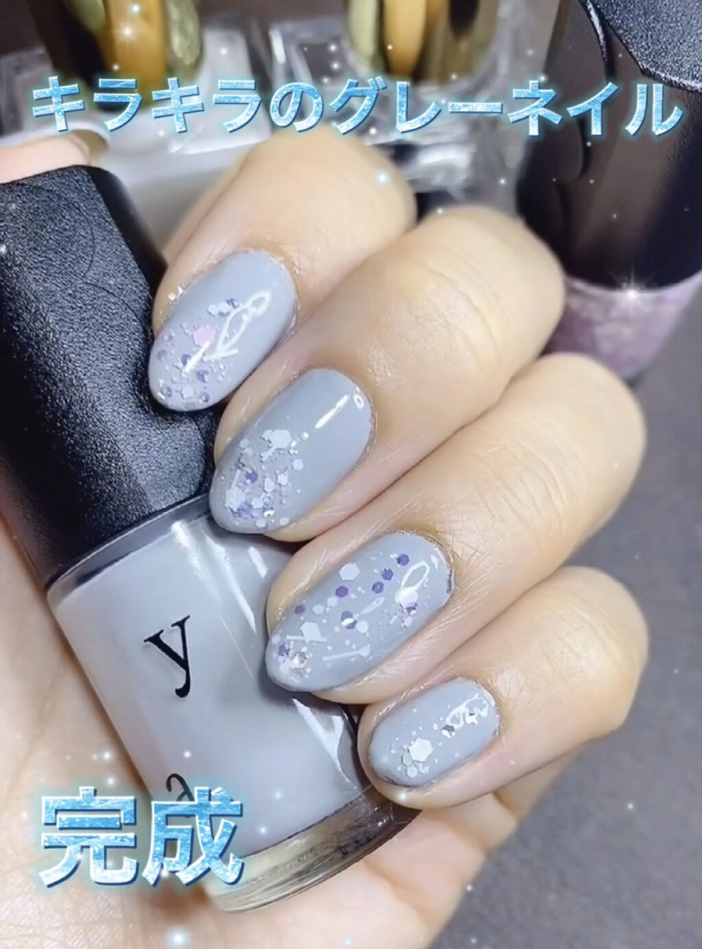 エチュードハウスのプレイネイルでキラキラグレーネイルやってみた💙静止画バージョン🎥プレイネイルは初めて購入しましたが、まずパケが可愛い🥰💕塗りやすさとしては、持ち手が太いので若干持ちにくい?筆の感じは問題なくって感じです✨今回は#132のグレーをベースカラーで使用💙#107のラメをアレンジに使用しました❣️グレーのネイルはムラになりにくく、塗ると厚みが出ます💞たっぷり付ければ1度塗りでも大丈夫そう☺️ラメは白やピンクの色んな形のらめが入ってます💕良く見ると桜の様な花の形もありましたが、量が少ないので、ねらって取るのは難しそう💦ベースコートはクイックスムージングベーストップコートはクイッククリスタルコートⅡ今回の購入品は両方とも可愛くて満足です😍是非参考にして下さい✨#グレーネイル#ETUDE#プレイネイル#シンプルネイル