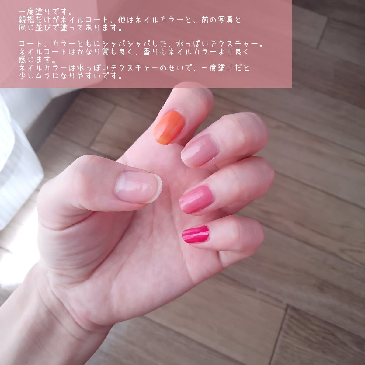あくまでもお試し塗りなので雑いです(笑) 透け感のあるかわいいカラー❤ ヤバヤバかわいい🤣 フレグランスネイルと言うだけあり 良い香りかします✨ こちらを使ってしっかりと完成ネイルは また後日投稿します(笑) 雑すぎすみません💦