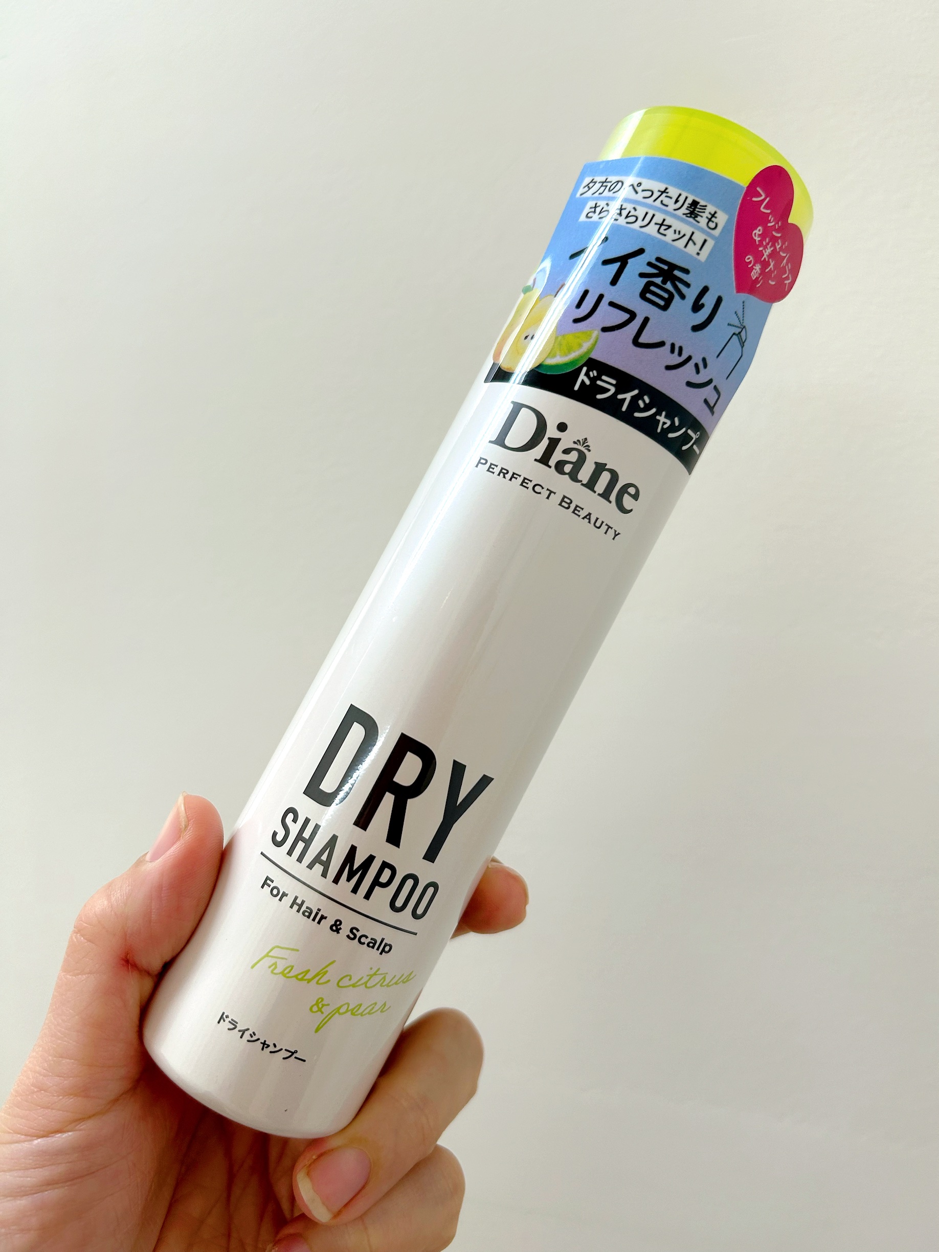 ダイアンパーフェクトビューティ―ドライシャンプーフレッシュシトラスペアの香り95g朝起きた時や出先から帰ってきた時の頭皮のベタついたときに細かく何度もシュッとしてます。このフレッシュシトラスペアの香りが1番シンプルで万人受けだと思います。まだ...