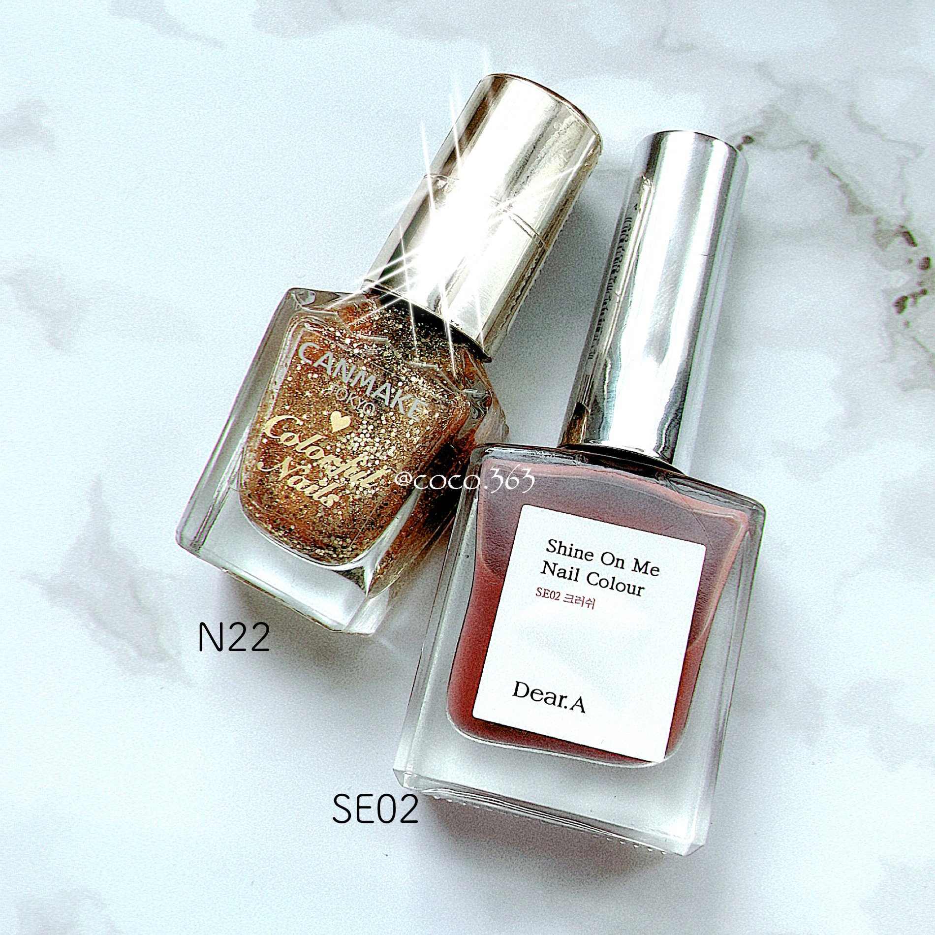 Dear.A シャインオンミーネイルカラー シアー感強めなので3度塗りでボトルカラーに🙌🏻肌なじみがよいカラーなので普段使いにも推しの1色です🫶🏻 キャンメイクは廃盤カラーです! Qoo10、楽天等のECサイトにて販売