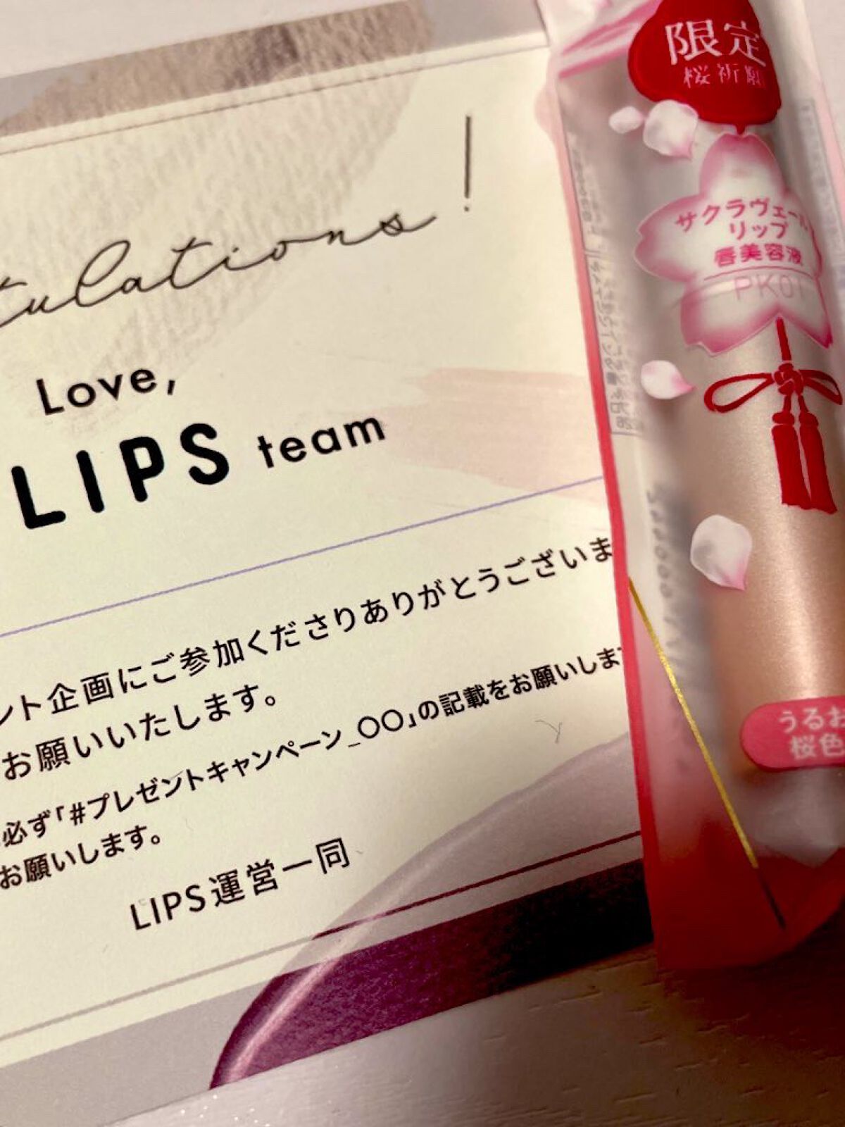 皆さまの投稿を見て(ღ˘⌣˘ღ)iloveyou欲しくなり今の時期は合格祈願?とか恋成就するリップとか?で、話題なのかな?ワタクシのはノーマルな💄💕シアーなので保湿リップ代わりにと、買いました❤#パラドゥ#サクラヴェールリップ#PK01#すっ...
