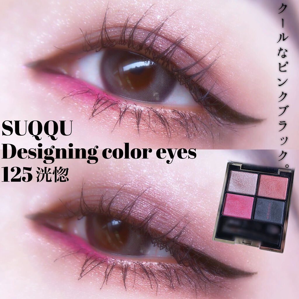 SUQQUデザイニングカラーアイズ125洸惚夏コレ限定品になります。とても可愛いラメ集結アイシャドウです。わたしは、ブラックをベースにしてピンクやコーラルカラーにスパイスだしてみました。ダークになり可愛いパープルがうまれました。わかりやすいよ...