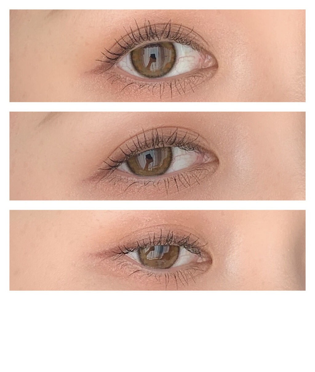 こちらゴクノビマスカラということで一度塗りでは長さがでませんが 二三度塗ることで長さがしっかりとでてくれますし 何度塗ってもダマにならない点が良いです! ブラシがとても塗りやすいことや 塗った際に目元にあまり違和感がなく 軽いつけ心地で自然な仕上がりになることが とても良くプチプラだったため購入してみましたが 使い心地が良く期待度以上だったので 嬉しいマスカラでした。 またウォータープルーフなのに お湯でオフできる点や 6種の美容液成分配合されていて まつげケアもできる点も魅力でした。