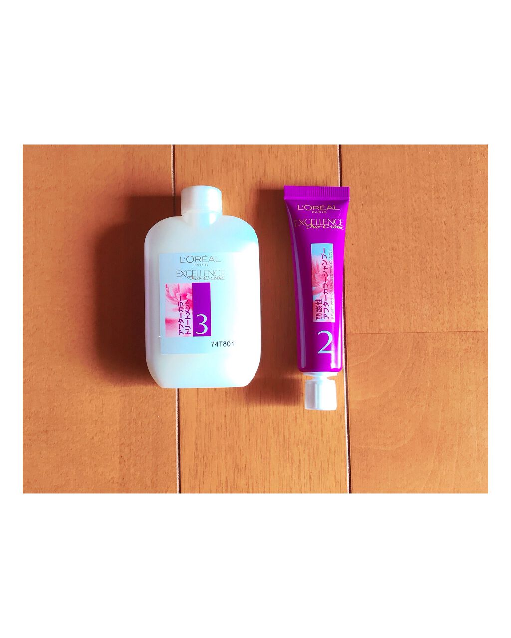 トリプルケア成分配合でムラなくしっかり染まるヘアカラー‼︎母が普段から愛用している白髪染めです😊こちらのカラーは5NB自然な栗色です。染毛剤に加え、アフターカラーシャンプーとトリートメント付き♪まずは染毛剤の二剤を容器に入れてしっかり混ぜます。それを乾いた髪にコームで塗るだけの作業♪♪1人でも簡単に染めることができます😊ミディアムヘアの母には全体に使って染毛剤がやや余るくらいです。母がロレアルパリを気に入っている点は、他の白髪染めよりもニオイがきつくなく、使用中も快適な点。またムラなく染まり、ドライヤーで乾かすとツヤツヤ、サラサラな仕上がりになれるところ❤️とのこと😆母も昔は毎回美容室で髪を染めていましたが、お金も時間もかかるし、ロレアルパリなら美容室に負けないくらいの仕上がりになるとのことで、それ以来ずっと自宅でヘアカラーをしています😊✨