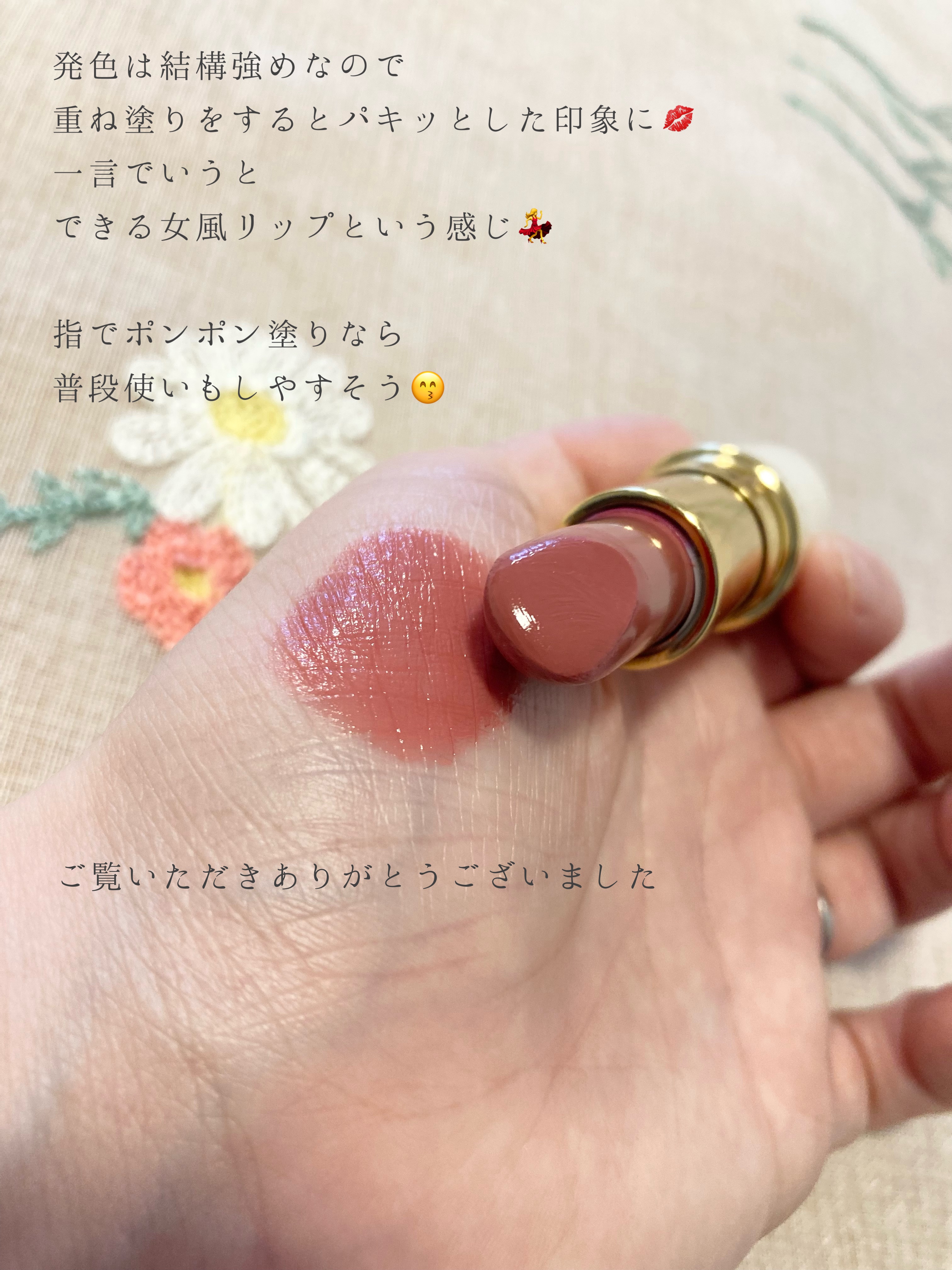 まずこのリップの見た目愛してます☜ ツヤ感は別シリーズの リップカラーシールド の方がある気がするけど それでも全然満足! てゅるんてゅるんしすぎないので 落ち着いて見せたい時にはピッタリ🙏✨ このリップが心強いみかたになってくれること 間違いなし🦸♀️