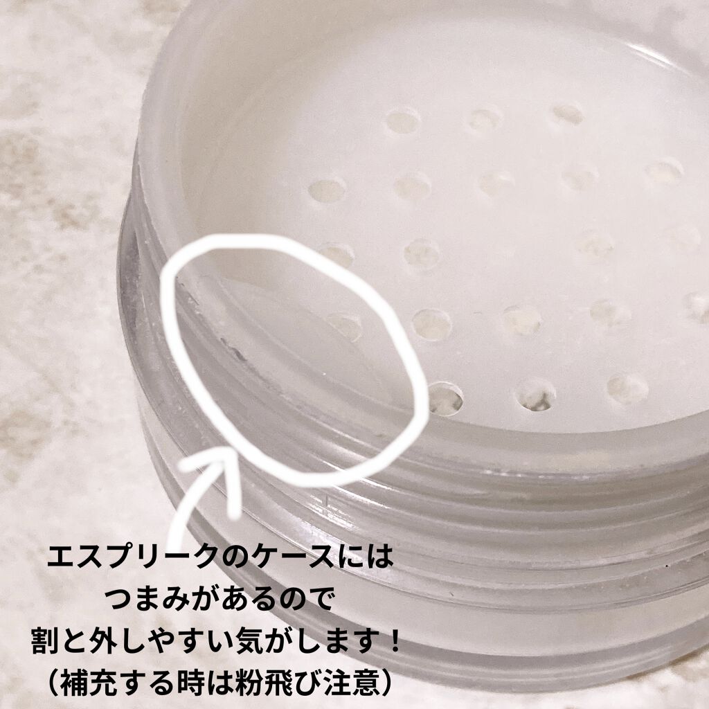 リキッドファンデーションを使っているので新しいおしろいを探していてESPRIQUEフェイスパウダー使ってみました!明るい透明感を引き出して毛穴などの凹凸もふわっとカバーするルースパウダー時間が経っても白浮きせず厚塗り感のない透明感のある仕上がりをキープしてくれるみたいです!よく時間がたつとほうれい線にファンデーションが入り込んでいたんですがこれ使ってからそれが目立たなくなったし化粧崩れもあんまり目立たなくなりました!パフもふわふわで使い心地もいいしぬったとき白くなることもなくほんとに自然な仕上がりだけど肌をカバーしてくれてきれいに見えます!いいおしろい探してる方ぜひ使ってみてください✨#初買いコスメ