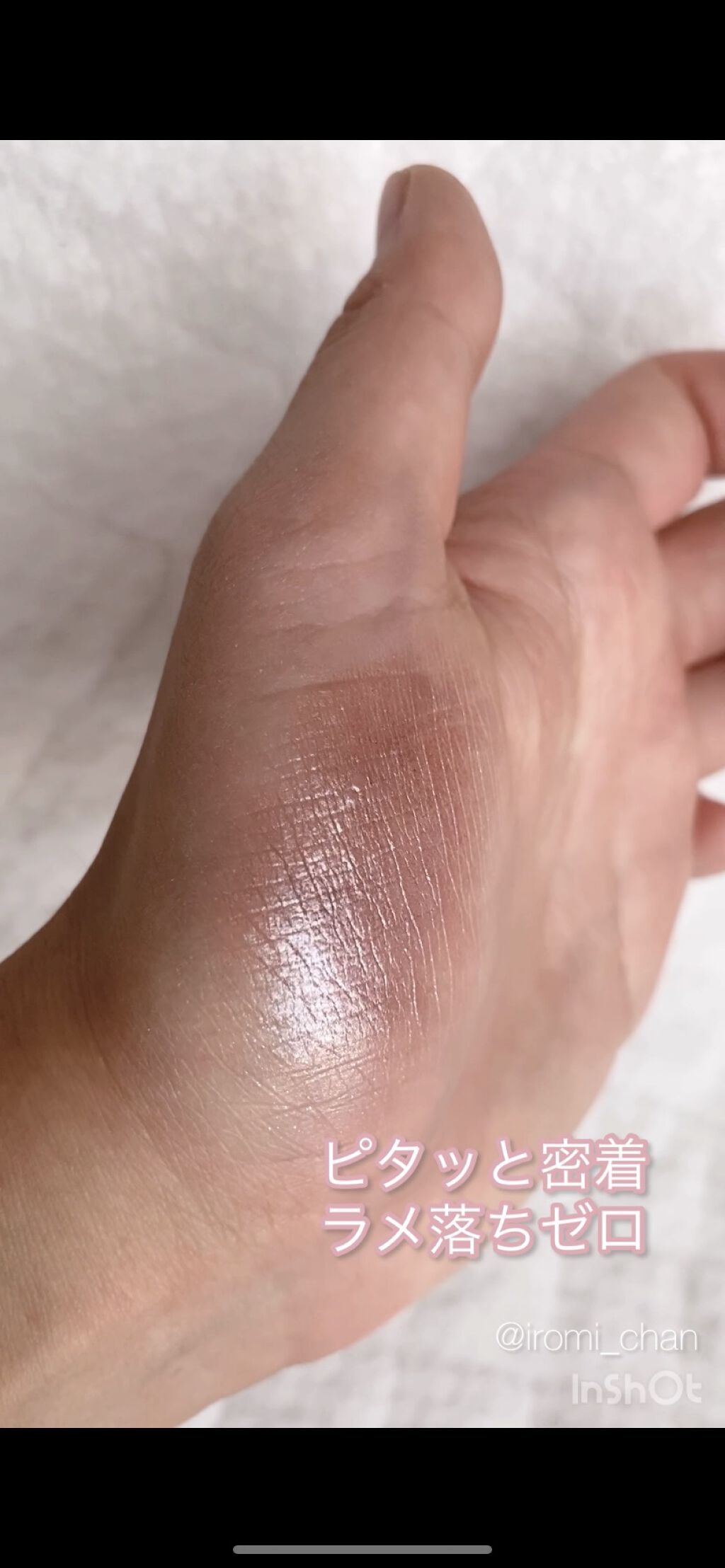 密着感はよい感じです! 涙袋のあたりに塗っていますが、花粉の時期も全く問題なかったです^ ^ 色が落ちないところ。 肌に塗って、すぐに固定されてるような感じです。 何より、花粉の季節に使えるというのが素晴らしい、、、!