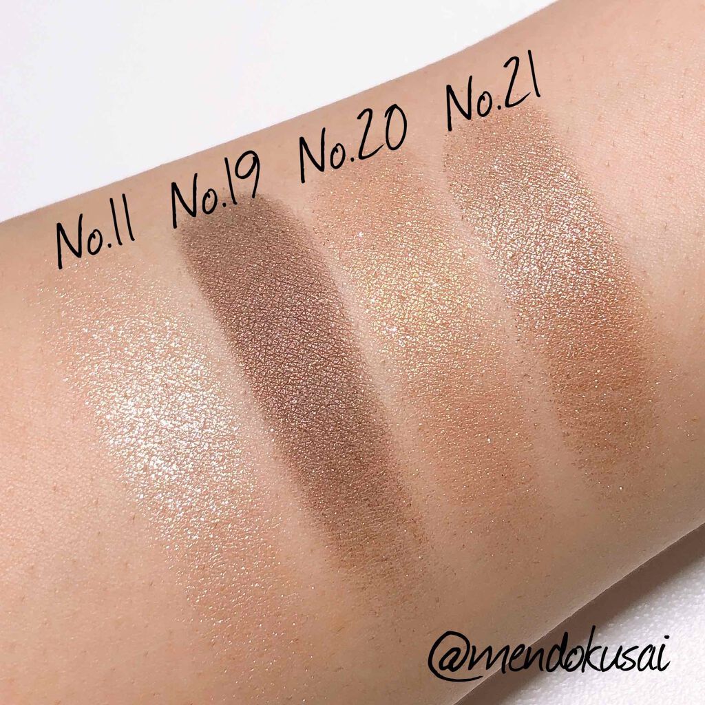 🌸MISSHAモダンアイシャドウイタルプリズム ②◎No.11バニラシュガー (グリッター)まさにバニラ色のお砂糖を思い浮かべるグリッタータイプのアイシャドウ。ベースが薄いクリアベージュでシルバーラメがチラチラ。イエベもブルベも使いやすいと思います。◎No.19シェケラート (シマー)クールなエスプレッソブラウン。赤みのあるブラウンブラックでピンクの細かいラメが入ってます。ブルベの締め色におすすめ。◎No.20シューティングゴールド (グリッター)カッパーゴールドベージュ。大粒の多色ラメが入ってますがギラギラするほど大量ではなく、チラチラと輝く程よい量です。大粒ラメはシルバー、ピンク、グリーンでなんだか春っぽい感じもします。イエベにおすすめ。◎No.21レディセーション甘すぎないピンクブラウン。ゴールドラメが入っているのでイエベも使いやすく、色味的にはブルベに似合いそう。ちょっとスモーキーがかっているクール系なピンクブラウンなので可愛くなりすぎません。続きはまた後日投稿します🙋♀️