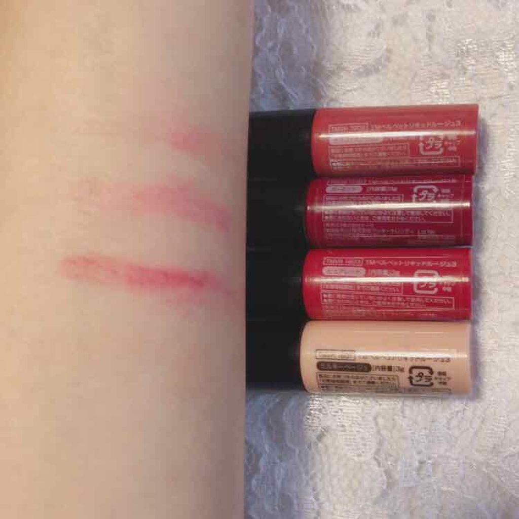 🎲コロンっと可愛いマットリップ🐭キャンドゥで購入したベルベットリキッドルージュ3g台湾製各100円(税別)です☺️#クレヨンタッチミー#100均#カラバリ豊富スウォッチは上から順番に🐪テラコッタブラウンこのお色をオススメしたくて今回載せました。くすんだピンクブラウンのようで鬼かわです。ブラウン初心者の方でも使いやすいと思います🧡肌色の延長線上みたいでヌーディながらも唇をぷっくりみせてくれます。色的には最高でした✨#テラコッタ#ブラウン#トレンド#ぷっくり#立秋#オシャレ📕ガーネット青みが強い赤です。色白に見えてとても好きでした。#ガーネット#ブルベリップ探し#白雪姫#赤#色白効果#高発色🌼ピュアレッドガーネットに比べると青みが弱まりますがやはり青いです。付けると元気が出る春っぽい赤です。#ピュア#顔色イキイキ#立春#韓国風#マット🥐ミルキーベージュ人によって白っぽく発色したりピンクっぽく発色するようです。私は白っぽく発色します。可愛いらしいお色ですが顔色が悪く見えて厳しいです。ベージュはあまり使わないので100円で試せて良かったです🙆♀️#ミルキー#ベージュ#可愛い#試しやすいお写真4枚目はティッシュでゴシゴシ拭きました。ベージュ以外はなかなか落ちませんでした👌オシャレなカラーばかりで他にも集めたくなります🎨コンパクトサイズでコロコロしているところも可愛いです🤹🏻♂️バニラのような香りがするところも好きです🍮星が少ない理由はなくなるのが早いと思ったからです。マットリップなので下層部に溜まっているのかもしれません🏺中身が見えないのでなんとも言えません😥底見えないコスメです💨#口紅#比較#スウォッチ