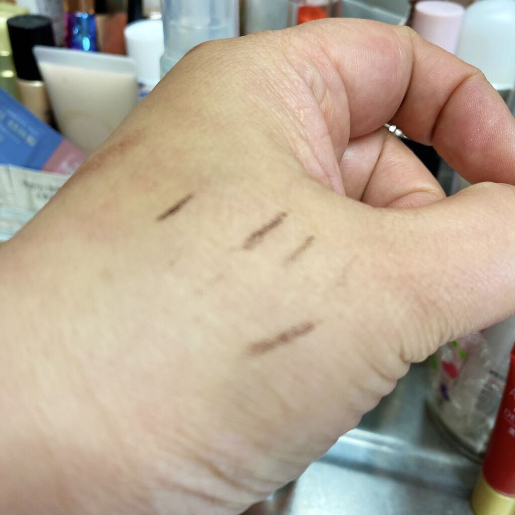 目尻のみにオンしてみました(●╹ᴗ╹●) 赤みブラウン です❣️(*^^*)❣️ 目元重視メイク 💯✨なので是非✨ 実感━━━━━☞汗水、擦れに強いよ❣️ ラスト画像が 帰宅して 泡石鹸で手洗い後に残った証✨にて是非✨
