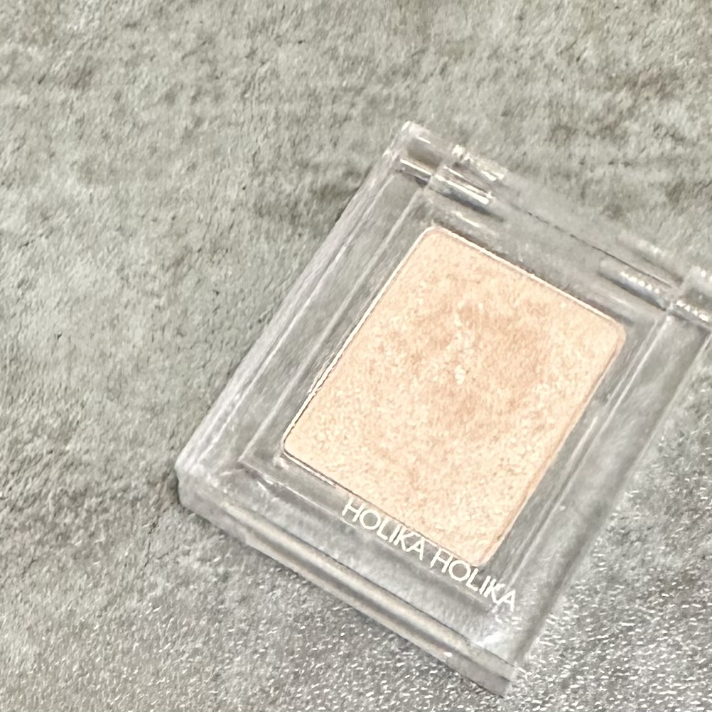 HOLIKAHOLIKAピースマッチングシャドウSBE02シルクブラウス【廃盤なったけど!】黄みにも寄らないベージュだから瞼全体に仕込んだり涙袋にいれたり重ねたりと万能使いのできるシャドウ細かいラメも入ってる似たようなカラーどこにでもあるけど瞼に乗せた感じの色味は唯一無二#韓国コスメ#スウォッチ#プチプラ#単色アイシャドウ#シングルアイシャドウ#Qoo10
