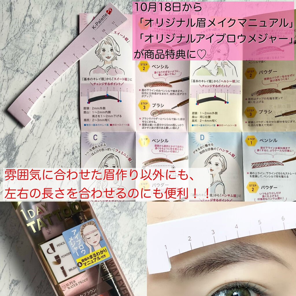 眉ペンシル+パウダーがついたチップ+スクリューブラシが一体になったアイブロウアイテム✨【ポイント】✓スーパーウォータープルーフで、擦ったり濡れても落ちづらい✓これ一本でふんわり眉が作れる!✓眉ガイドのメジャー付きで、似合わせ眉を作れる【使ってみて】今回使用したのは03のモカブラウン。赤みのある落ち着いた髪色の人向けの色味です。結構暗めの色なので、髪色が8トーンより暗めの方向けかなと思いました💡ペンシル部分は芯が細くて描きやすい!眉尻も細さを調節しながら描くことができます🙆♀️パウダーチップ部分は、とても薄づきなので、いきなり濃くなってしまうことも無く、濃さを少しづつ調節できます😊眉頭はこのチップのみで描くと自然な眉になります。スクリューブラシは細くて、細かい部分までぼかすのに便利です😇描く前にもこのブラシで眉毛の毛並みを整えてから描くことをオススメします😌アイブロウペンシル以外にも、似合わせ眉の描き方や、メジャー付きなので、眉毛の形に悩む方は一読の価値アリです!このミニ冊子も含めて、キレイな眉毛を作り出すことが出来るアイテムでした😍¥1200(税別)#Kパレット #1DAYTATTOO #キレイ眉のつくり方#アイブロウペンシル#アイブロウパウダー#アイブロウブラシ#アイブロウデザイニング#スクリューブラシ#眉デザイン#眉毛の書き方#眉毛の描き方#赤みブラウン#赤系カラー#眉毛難民#眉毛の整え方#眉毛美人#ポイントメイク#スーパーウォータープルーフ#ウォータープルーフアイブロウ#ウォータープルーフ#ふんわり眉#抜け感眉#ストレート眉#平行眉#平行眉毛#動画でスウォッチ