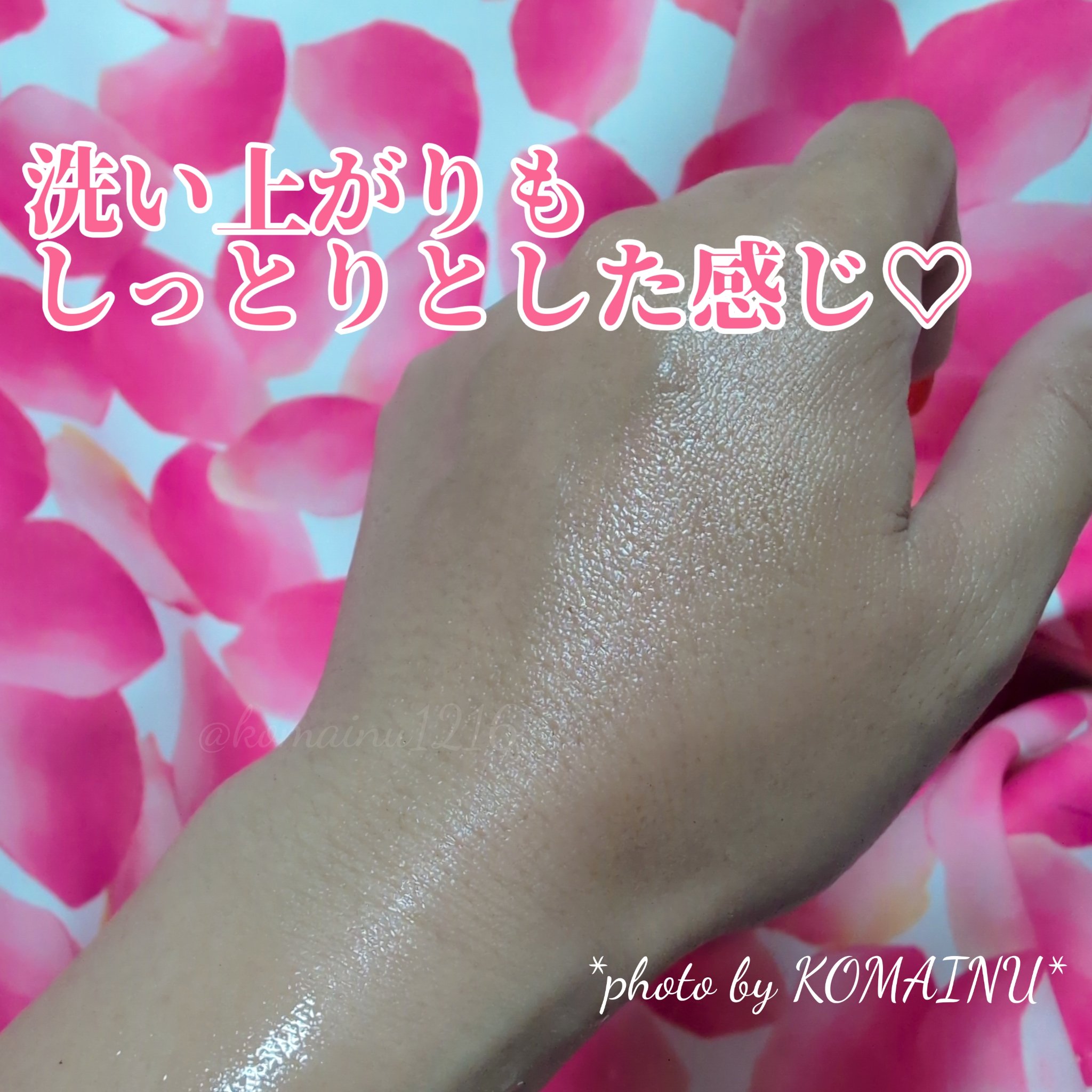 💟とにかく洗いあがりしっとり♡♡♡ お風呂上がり、クリーム塗らなくても大丈夫なくらい しっとりしています◎ お肌に優しい感じがします☺️ ボディークリーム塗り忘れても、 翌日の肌が潤っていて嬉しい♡ ボディケアをサボっても罪悪感少ないです。