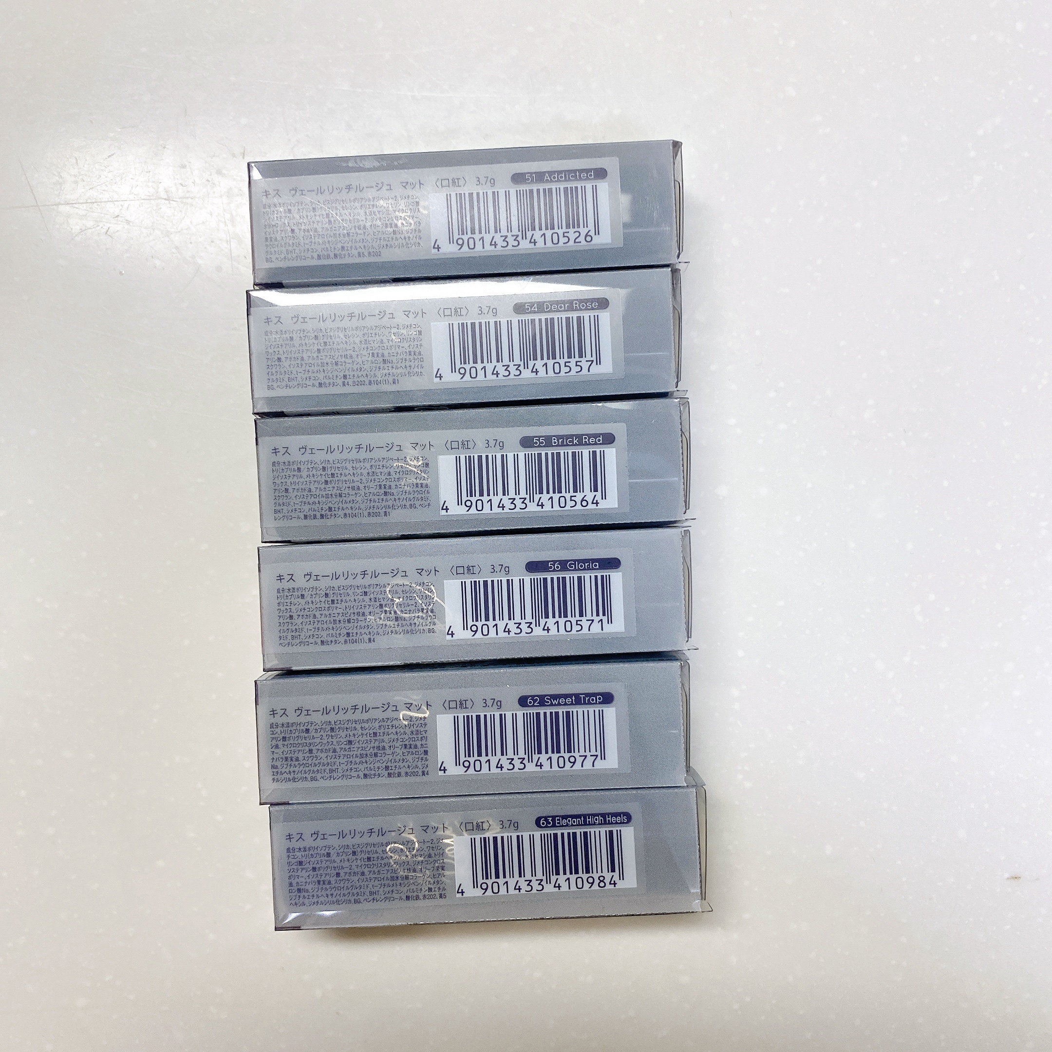 KiSSヴェールリッチルージュマット/51 Addicted53 Coquelicot54 DearRose55 BrickRed56 Gloria62 SweetTrap63 ElegantHighHeelsなめらか美発色マットルージュSPF10PA+ふっくらやわらか うるおい美発色ルージュうるおいのヴェールで唇をケアし荒れ、乾燥を防ぐ5種類の天然美容オイル 美容液成分ヴェルヴェットスムース処方上質な質感でムラなく上品な唇に唇にぴたっとフィットして美しい発色と仕上がりを長時間キープしますなめらかに伸びてクセになる心地よい使用感