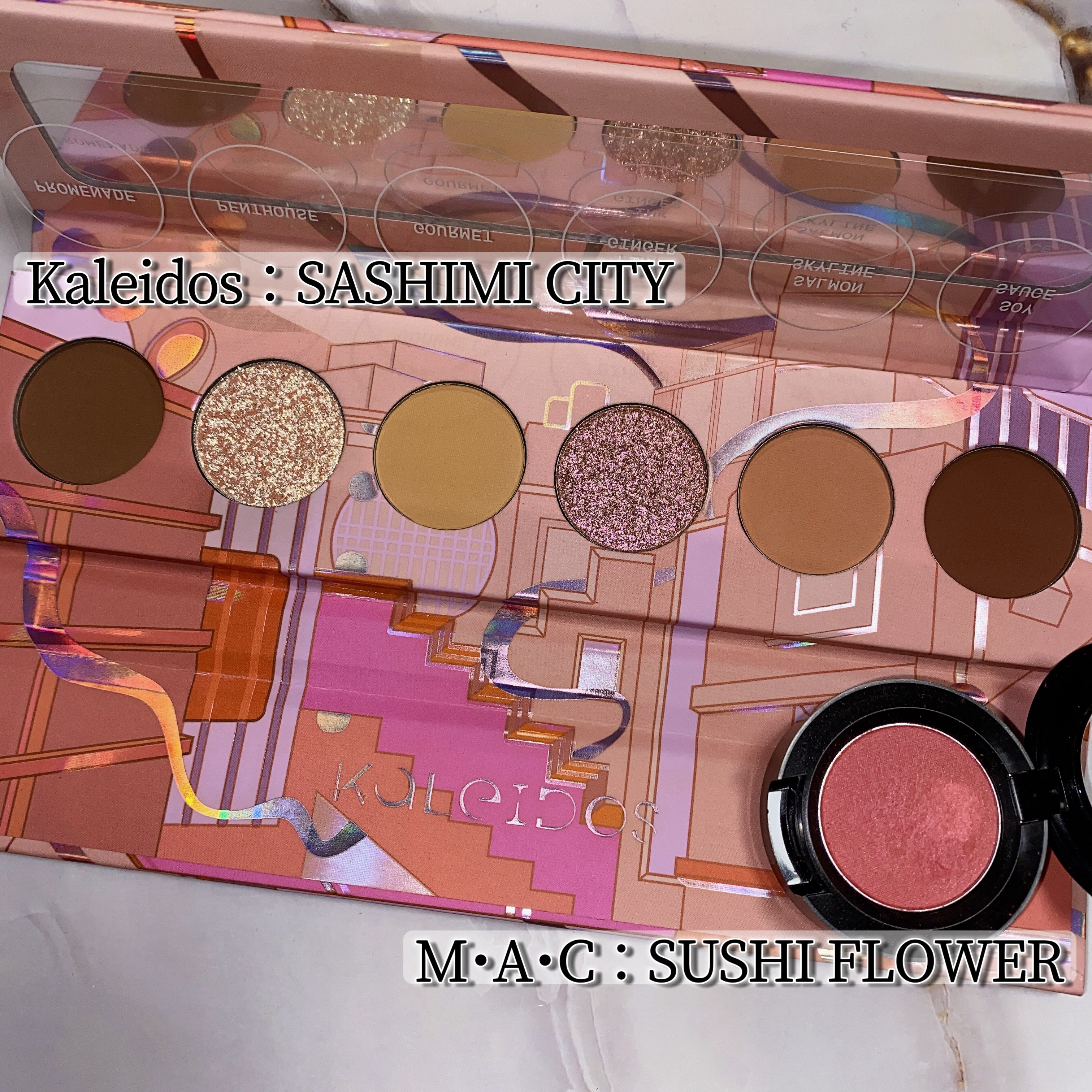 Kaleidos【SASHIMI CITY】とM・A・C【SUSHI FLOWER】刺身シティと寿司フラワーってなんだろね?🤔笑 目頭ほくろは目の横幅を少し広く見せてくれるし、両目とも描くと目と目の距離を縮める効果もあってミステリアス度もUP❣️ 切開ラインよりナチュラルに盛れて好き😍ただ両目とも描くと迫力も出るので普段使いは片方の方が良いかなぁ?🤔