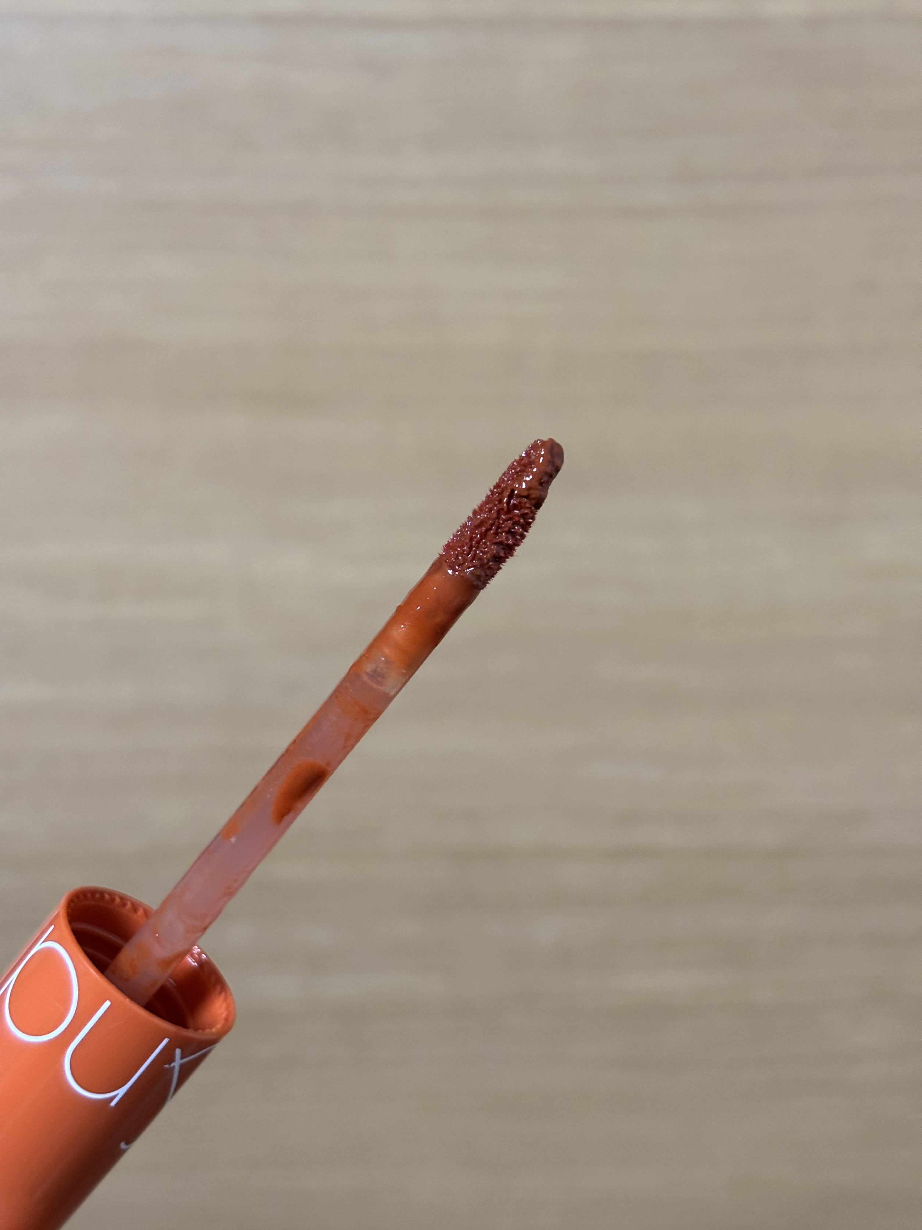 ロムアンドのリップ、ジューシーラスティングティントシリーズの、「アップルブラウン」というカラーです! かなりオレンジ味とブラウン味が強いカラーで、夏や秋にぴったりですね✨ ロムアンドのリップは何本か持っていて、他のカラーとも比較すると、JUJUBEというカラーに少し似ていますが、それよりもよりオレンジ感強めだと思います🍊 やはりロムアンド、取れにくさにも安心感があります! 2度塗りすると濃いめに発色して、ティッシュオフするとナチュラルで、気分によって使い分けれるのも嬉しいポイント💡 オレンジが好きな方には特にオススメできるカラーのリップですよ〜💄