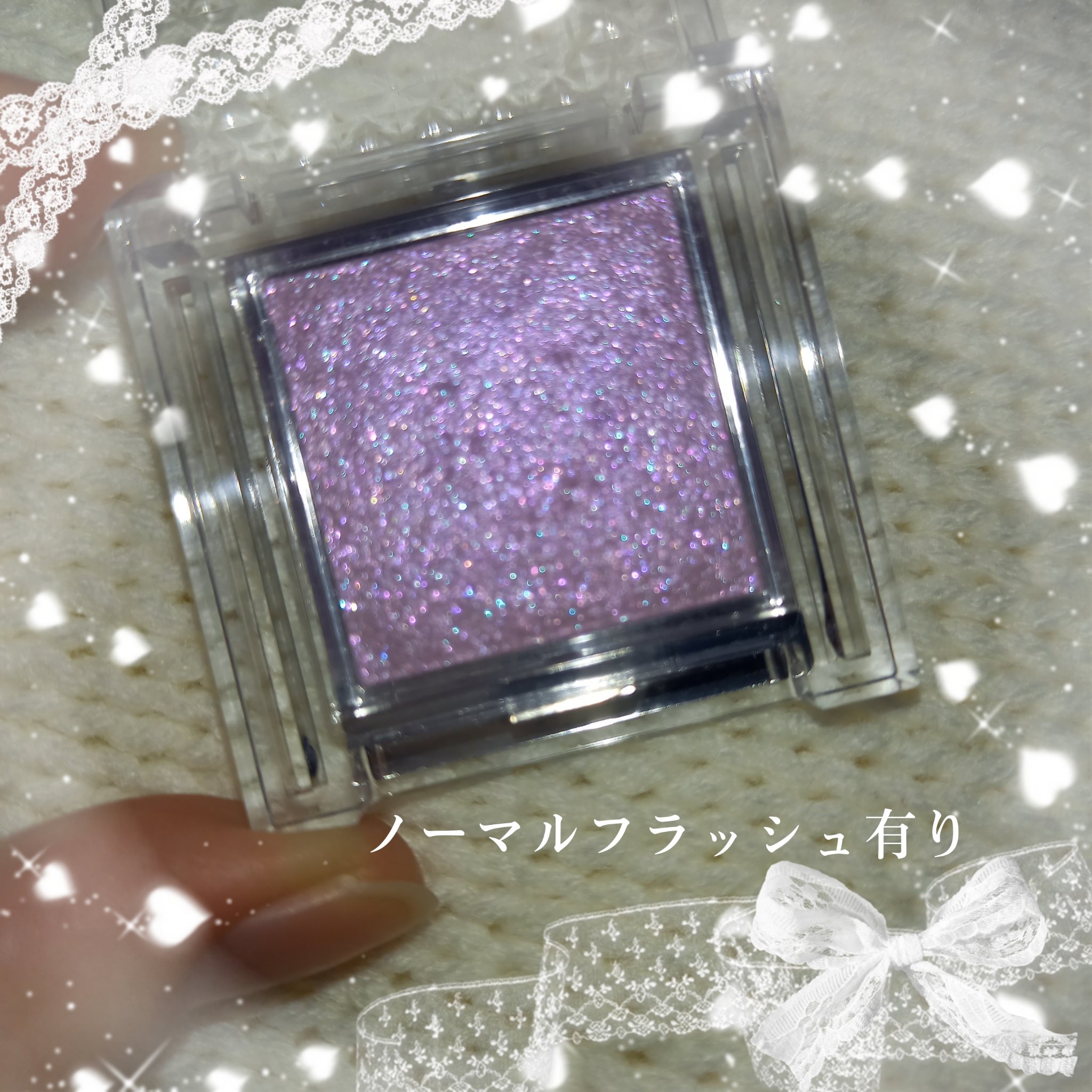 パープルのベースカラーに多色ラメがザクザク入っていて本当にプチプラとは思えない🥹💘 アイホール全体に塗っても涙袋に塗っても透明感が出てとっても可愛いです🤍 他のカラーも気になってきた……🤤💭✨