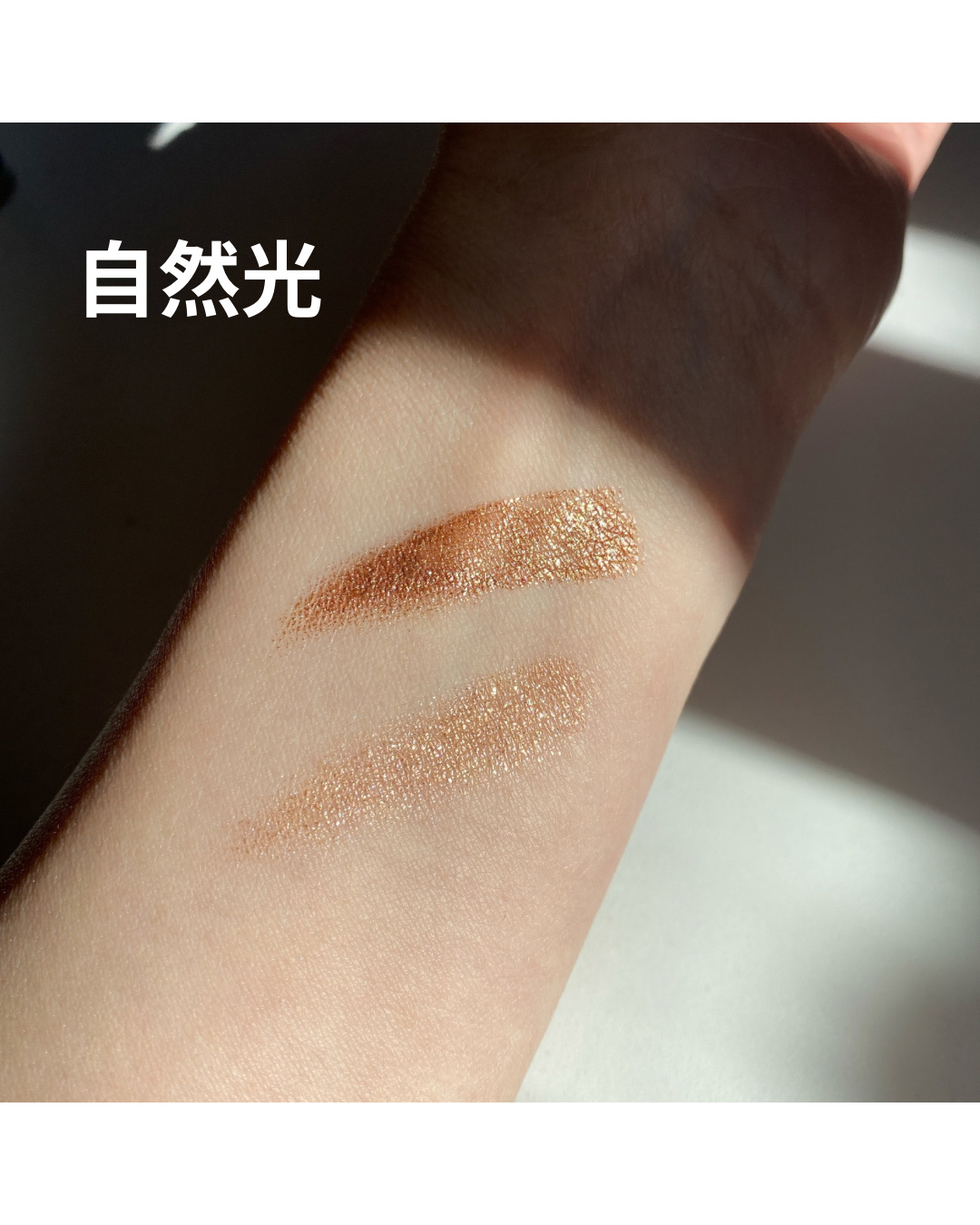 ビーム タイムは、ローズゴールドカラーなので、ほんのりピンクかかっているのでどのアイシャドウと重ねても使いやすかったです。 ラメも繊細でキラキラしているけど、下品にならないので大人でも使いやすいと思いました。 リキッドなのにベタベタせず肌にピタッと密着してくれます😊