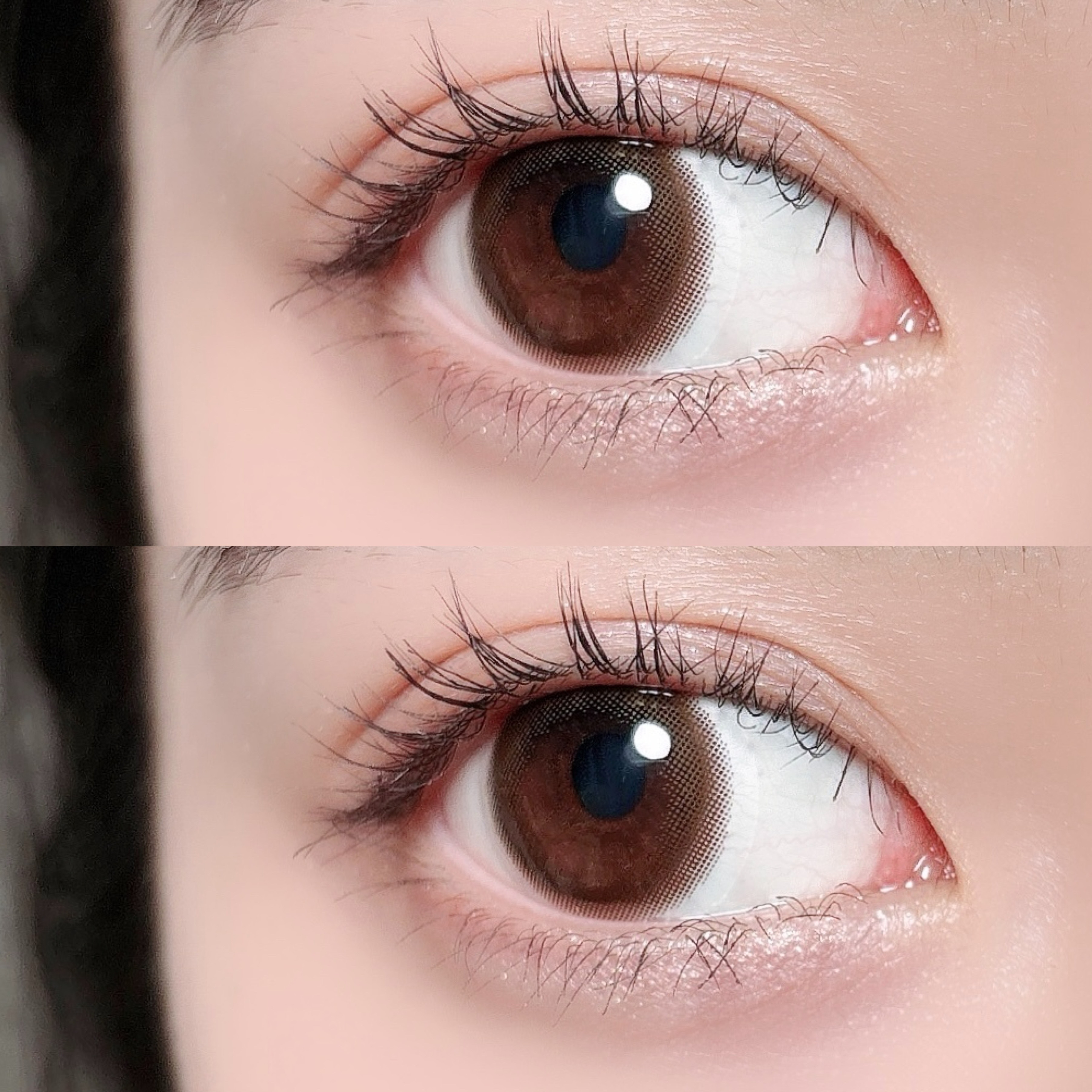 feliamoSheerBrown自然に大きく潤った瞳に見せてくれるフェリアモ。その中でもシアーブラウンは裸眼を自然に大きく見せてくれるのだそう💎画像3枚目の上がクリアレンズ、下がシアーブラウンをつけたものですが、本当にナチュラルなのがわかり...