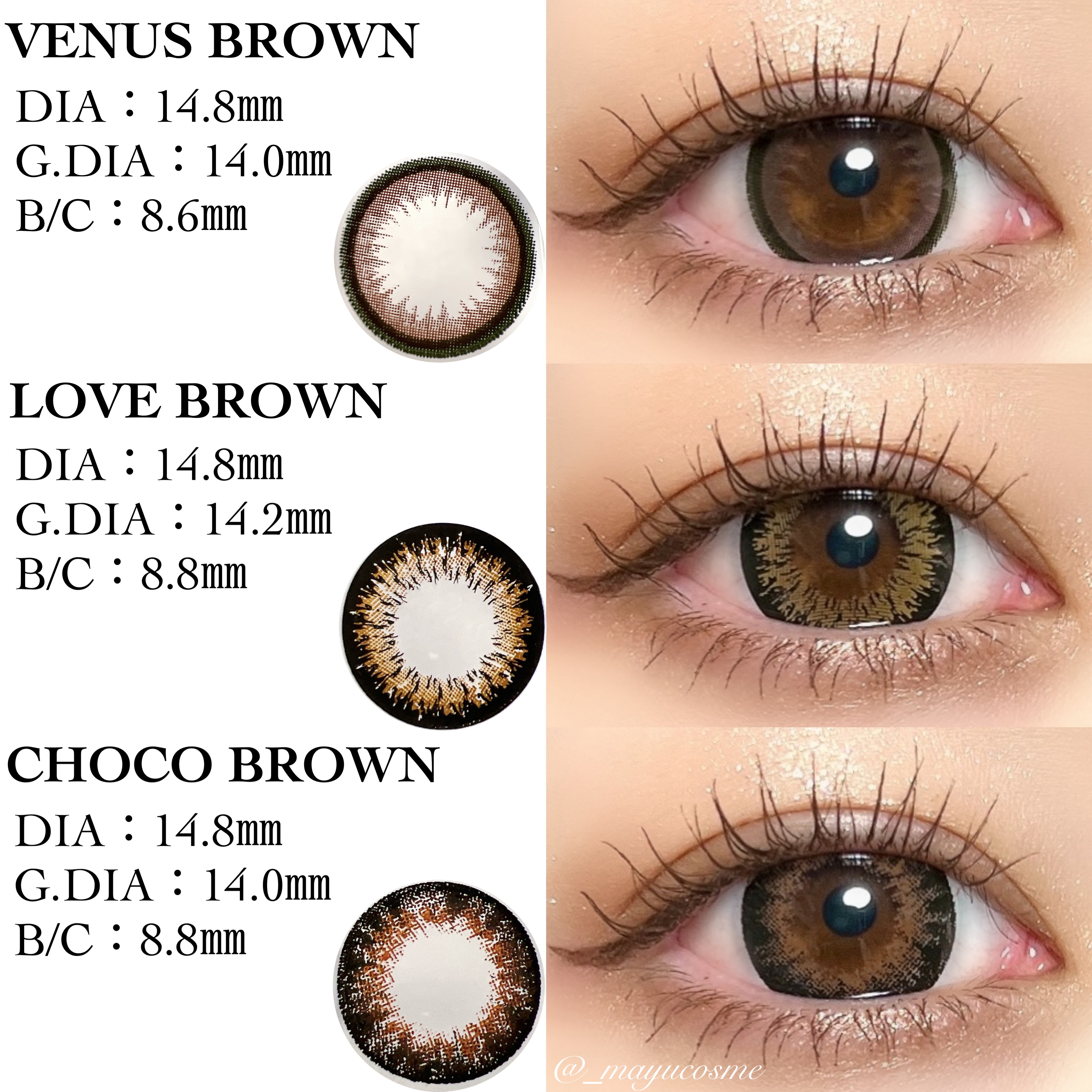 ギャルカラコン💋Mirage全12色レビューーーーーーーーーーーーーーーーーMiragemonthly*2lenses*Water:38%ーーーーーーーーーーーーーーーー𓈒𓏸presentedby⦅LILYANNA⦆ギャルカラコンならこれでしょ!ってくらいのデカ目、ハーフっぽカラコン。ミラージュからは12色もあるよ♡強めギャル♡✧GLAMOROUSGRAYDIA:14.8㎜|G.DIA:14.0㎜|B/C:8.6㎜黒フチに高発色グレーでハーフな瞳に。✧DAZZYBROWNDIA:14.5㎜|G.DIA:13.9㎜|B/C:8.6㎜くっきりフチにブラウンでセルフィー盛れNo.1瞳に。✧DAZZYBROWNDIA:14.8㎜|G.DIA:14.2㎜|B/C:8.8㎜しっかりフチとナチュラルブラウンでリアル盛りNo.1瞳に。✧MUSEBROWNDIA:14.8㎜|G.DIA:14.2㎜|B/C:8.8㎜しっかりフチと高発色ブラウンでラグジュアリーな瞳に。✧DAZZYGRAYDIA:14.5㎜|G.DIA:13.9㎜|B/C:8.6㎜くっきりフチにグレーでクールに決まる瞳に。✧VANITYBROWNDIA:14.8㎜|G.DIA:14.2㎜|B/C:8.8㎜自目の色味を活かしながら発色するブラウンでセクシーな瞳に。清楚ギャル♡✧VENUSBROWNDIA:14.8㎜|G.DIA:14.0㎜|B/C:8.6㎜しっかりフチとダークブラウンでうるっと甘い瞳に。✧LOVEBROWNDIA:14.8㎜|G.DIA:14.2㎜|B/C:8.8㎜ブラックとくすみブラウンの黄金比率で盛り度120%の瞳に。✧CHOCOBROWNDIA:14.8㎜|G.DIA:14.0㎜|B/C:8.8㎜ダークブラウンとブラックフチで魅惑のクッキリ瞳に。✧NUDEBROWNDIA:14.8㎜|G.DIA:13.9㎜|B/C:8.6㎜今っぽフチと明るめブラウンでちゅるんと盛れた瞳に。✧DAZZYBLACKDIA:14.5㎜|G.DIA:13.9㎜|B/C:8.6㎜くっきりフチにブラックで愛されガーリーな瞳に。✧DRESSBROWNDIA:14.8㎜|G.DIA:14.0㎜|B/C:8.6㎜繊細な3トーンブラウンで華やかに盛れた瞳に。強めギャルも清楚ギャルもこのカラコンで叶えちゃお!気になる方はぜひチェック💫#PR#リリーアンナ#LILYANNA#mirage#ミラージュ#ギャルコン#ギャルカラコン#カラコン#カラコンレポ#マユコスメ_カラコン