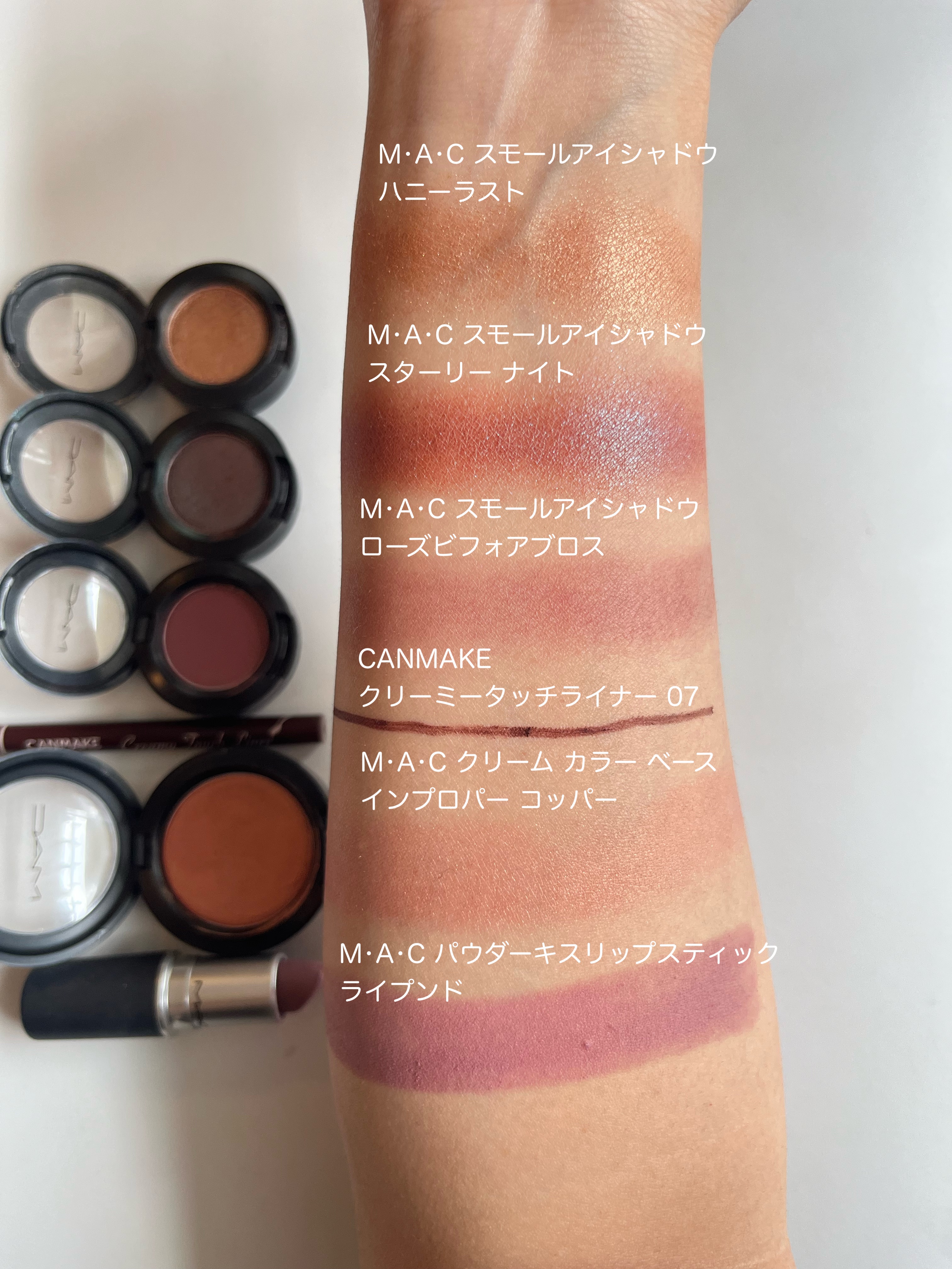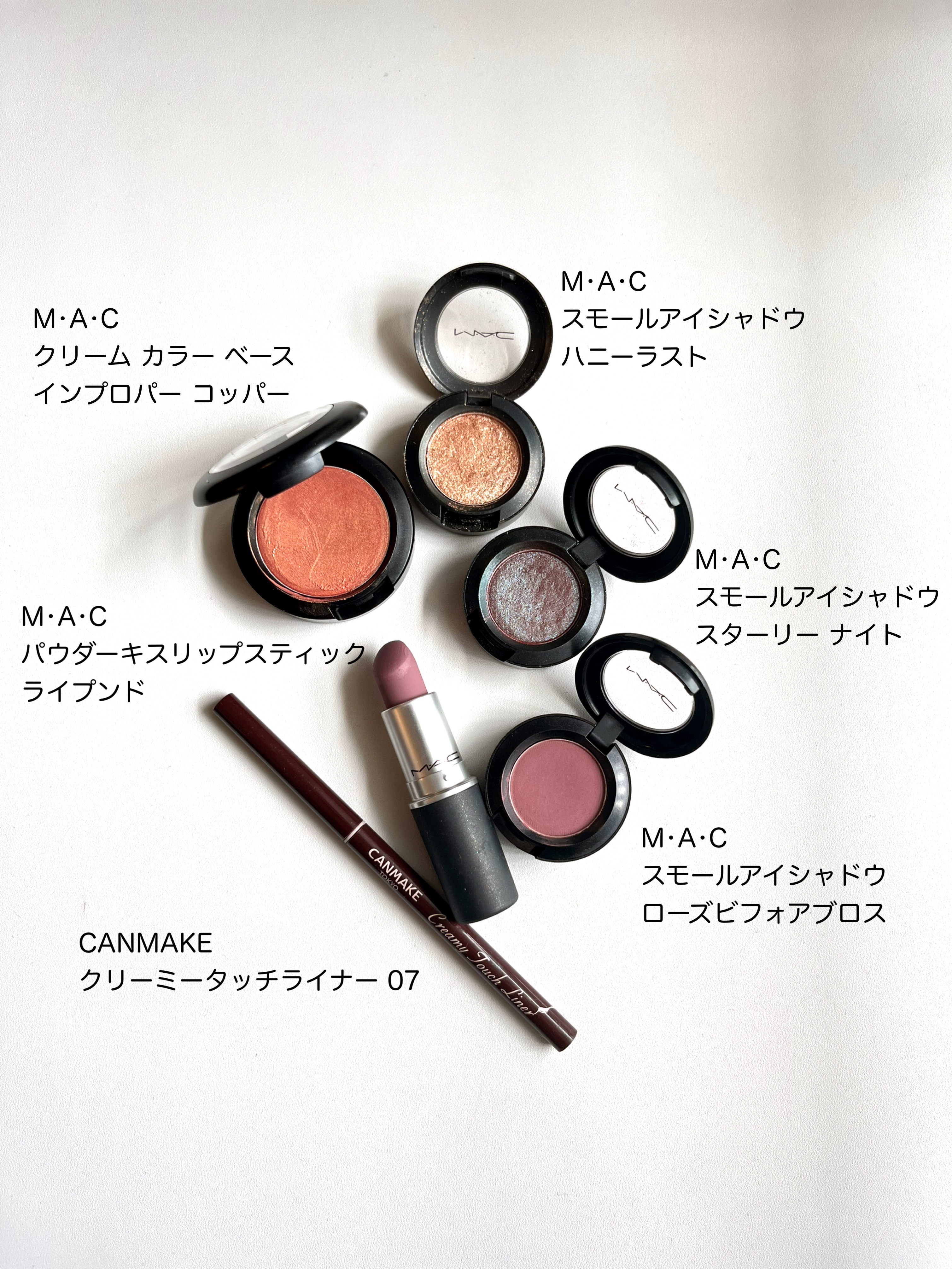 一つ前に投稿したアイメイクの続き☺️・・この日はリップにラベンダーカラーのライプンドを使いたかったのでそれに合わせたアイシャドウにしました☺️・・メイクアイテム•*¨*•.¸¸♬︎@maccosmeticsjapan・☑︎アイシャドウ#maccosmetics#スモールアイシャドウ#ハニーラスト(ブロンズをまとったピーチ(ラスター))👉上瞼と下瞼に・・M•A•Cスモールアイシャドウ#スターリーナイト(ウォームクロム(メタリックな偏光パールの輝き))👉目尻側にぼかし入れ、ブラシに残った分で目頭のくぼみにも。・・M•A•Cスモールアイシャドウ#ローズビフォアブロス(クールモーヴベリー)👉下瞼の目尻側・・・☑︎アイライナーCANMAKEクリーミータッチライナー07アズキブラウン・・・☑︎チークM•A•C#クリームカラーベースインプロパーコッパー(ゴールドの輝きを放つコッパー)👉この色とっても気に入っていたんだけど生産終了みたい。目元にもリップにも使えてとっても便利✨・・・☑︎リップM•A•C#パウダーキスリップスティック#ライプンド(グレイッシュラベンダー)👉MACのマットリップも大好きなんだけどパウダーキスのリップ(リキッドもスティック)も同じぐらい大好き❤ふわっとしたエアリーな仕上がりとつけ心地がたまらなく良い🙆・・・#メイク#メイクアイテム#アイメイク#アイシャドウ#単色アイシャドウ#アイシャドウ組み合わせ#MACアイシャドウ#偏光ラメ#偏光パール#お気に入りアイシャドウ#メイク好き#MAC好き#お気に入りコスメ#MACリップ#コスメ好き