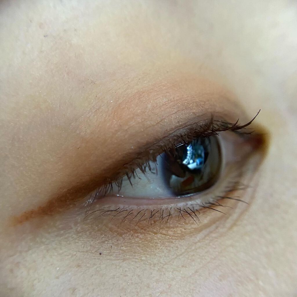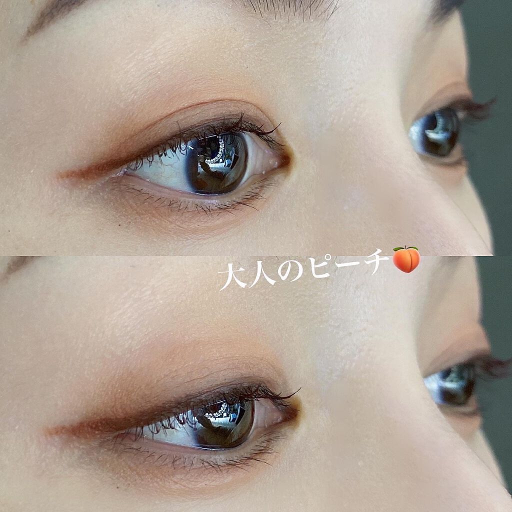 硬めブラシだと発色しますね👍🏻 瞼がチクチク痛かったですが…😂 今回は右上をアイホールに入れました とても可愛い😍🍑💞 今日気づきましたが右下はピーチがかったブラウンでこれまたいい色です♪ 硬めテクスチャーの良いところも見つけました ✔︎ 粉っぽくならない✨ ✔︎ 繊細で肌の色が透けるような発色✨ ✔︎ 密着力高め✨ マット風なのに、粉っぽくならずに透け感とほんのりパールで軽い印象に仕上がるのはとても興味深いと感じました💡手持ちのどれとも違うかな🧐