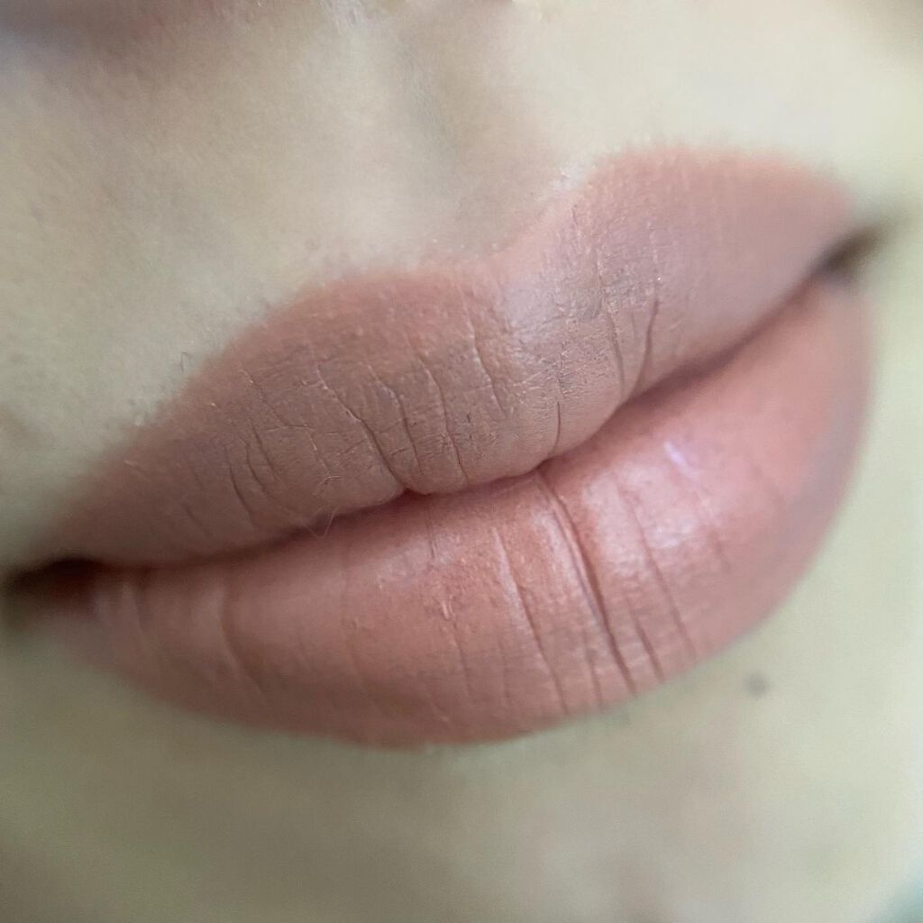 MACって結構派手色が多いイメージなのですがこの色はとってもヌーディです🤍ほとんどベージュに近いですが重ねていくとローズベージュに🌹大人っぽく仕上げたい時やアイメイクを際立たせたい時などに使っています𓇳かなりマットな質感なのでしっかり保湿して...