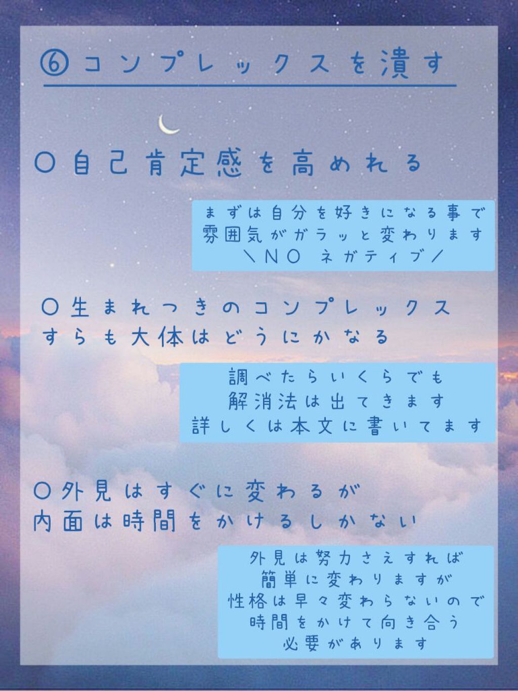 大変ご無沙汰しております、あや香です。投稿を決してサボっていた訳では無いんです。むしろ真剣に向き合っていました。ですが、そんな私に悲劇ばっかり起きるんです!!少し聞いてやってください、ちびちびの愚痴です。一回目は作った画像が消えてガン萎え。二回目は下書き保存せずに閉じてしまった&疲れてて破棄ボタンを押したせいで文が全部消えてガン萎え。本当に気づいた時、うっせえわ始まるかと思いました。要は何が言いたいのかというと軽く地獄を見たという事です。以上!!投稿頻度が激落ちしてた言い訳でした!気を取り直して、今回取り上げるテーマはズバリ!?ドルルルルルルルルルっ!じゃんっ!(セルフで言うスタイル)✰⋆。:゚・*☽:゚・⋆。✰⋆。:゚・*☽:゚・⋆。✰⋆。:゚・*☽✰⋆。:゚・*☽:゚・。〜コツコツ毎日垢抜け〜日常に+αするだけで劇的に可愛くなれる垢抜け方法✰⋆。:゚・*☽:゚・⋆。✰⋆。:゚・*☽:゚・⋆。✰⋆。:゚・*☽✰⋆。:゚・*☽:゚・。でーす!!投稿頻度落ちたので申し訳程度に女の子大好き、ゆめかわを意識してみましたー!笑私のフォロワー様はもちろん垢抜けのための努力はしているとは思いますが……。今回は「ダイエット」とか「メイク」とかそんな大きな事じゃないです。小さい事だけど、めちゃくちゃ大切なことを6つご紹介させて頂こうと思います!!画像に簡単ですがまとめさせて頂いてるのでお時間のある方のみ本文を読んでいただけたら嬉しいです♪本文を読んでくれた心優しい方だけにプラスアルファで書かせていただいてることもあるので良ければどうぞ✨それでは早速いってみよー!!!。・゚・。。・゚・。。・゚・。。・゚・。・゚・。。・゚・。。・゚・。。・゚・。。・゚・。・゚。1️⃣本文を読む前の確認事項2️⃣毎日続けれる!!簡単垢抜けリストの解説。・゚・。。・゚・。。・゚・。。・゚・。・゚・。。・゚・。。・゚・。。・゚・。。・゚・。・゚。1️⃣本文を読む前の確認事項私の投稿で毎回と言っていいほど出てくる垢抜けという単語。垢抜けとは何か?という内容を長々と語ってみたり色々していましたが今回は少し違います。その内容は「その垢抜けの努力本当に貴方に合っていますか?」という事です。例えば貴方は今、体型が気になっているとします。私(=あや香)は根っからのストレートなのでクビレがあまりなく肩幅の厚い服を着るとガンダムに変身することができる人間です。ストレートの他にはナチュラル・ウェーブなんかもありますね。その3つの体型にはその体型特有の悩みというものが存在するわけですよね?それなのにストレートがウェーブ用のダイエットをしても多少の効果はあるかもしれませんが100では無い。良くて80くらいしか獲得することが出来ないと思うんです。ちなみにこれ過去の私のことです。ストレートとウェーブって結構違うのにどこで間違ったのやら……笑今回は体型を上げさせて頂きましたが、メイクでも服装でも髪型でも同じことが言えると思います。ブルベはオレンジ系のメイクが似合わない。ストレート体型は体のラインが見える服の方が良い丸顔は前髪ぱっつんや巻き髪をすると顔がでかく見えるなどなど……。分かりやすいように私のことを上げましたが読んでくださってる方も自分に当てはめてみてくださいね。要は自分に合っていないことをするより合っていることを極めるほうがずっと自分にとってお得ですし、嬉しい効果が沢山貰えるというわけです。つまり何が言いたいのかというと!!手当り次第に試すのではなくてまずは「自己分析」を行う。その上で自分に合った方法を探す。これをするだけで一気に変われます。今回紹介する内容も自分に合っているものだけを取って行ってみるのも良いと思いますよ🙆🏻✨┈┈┈┈┈┈┈┈┈┈┈┈┈┈┈┈┈┈┈┈┈┈┈┈┈┈┈2️⃣毎日続けれる!!簡単垢抜けリスト今回は①と⑥を取り上げて解説させていただきます!!①お風呂で全身マッサージ〖レギンス入浴〗毎日の生活のなかでのダイエットの黄金タイムは、なんといっても入浴時。入浴の仕方こそ、ダイエットの鍵と言っても過言ではありません。特に私が激おすすめなのが「着衣レギンス」を履き、お風呂でマッサージを行う「レギンス入浴」!!着圧レギンスの圧と水圧がダブルで働き、血液の巡りをよくしてくれるので、ダイエットの大敵であるむくみや冷えの予防に役立ちます。お湯の温度は、38〜40℃、入浴タイムは20分ほどが良いとされています。レギンスを履いて、普段のように入浴するだけでもセルライトを解消しやすいのですが、マッサージを行うことによって、より短期間でセルライトを解消しやすくなります。またお風呂は食事前に入るのがポイント!!お風呂に入ると全身に血液が行き渡るので空腹感が緩和され、食べ過ぎ防止に繋がります!〖ツボ押し〗ツボは全身に約360か所あり、全身の筋肉、神経、血管、リンパ節、内臓などの器官の動きを促進させる位
