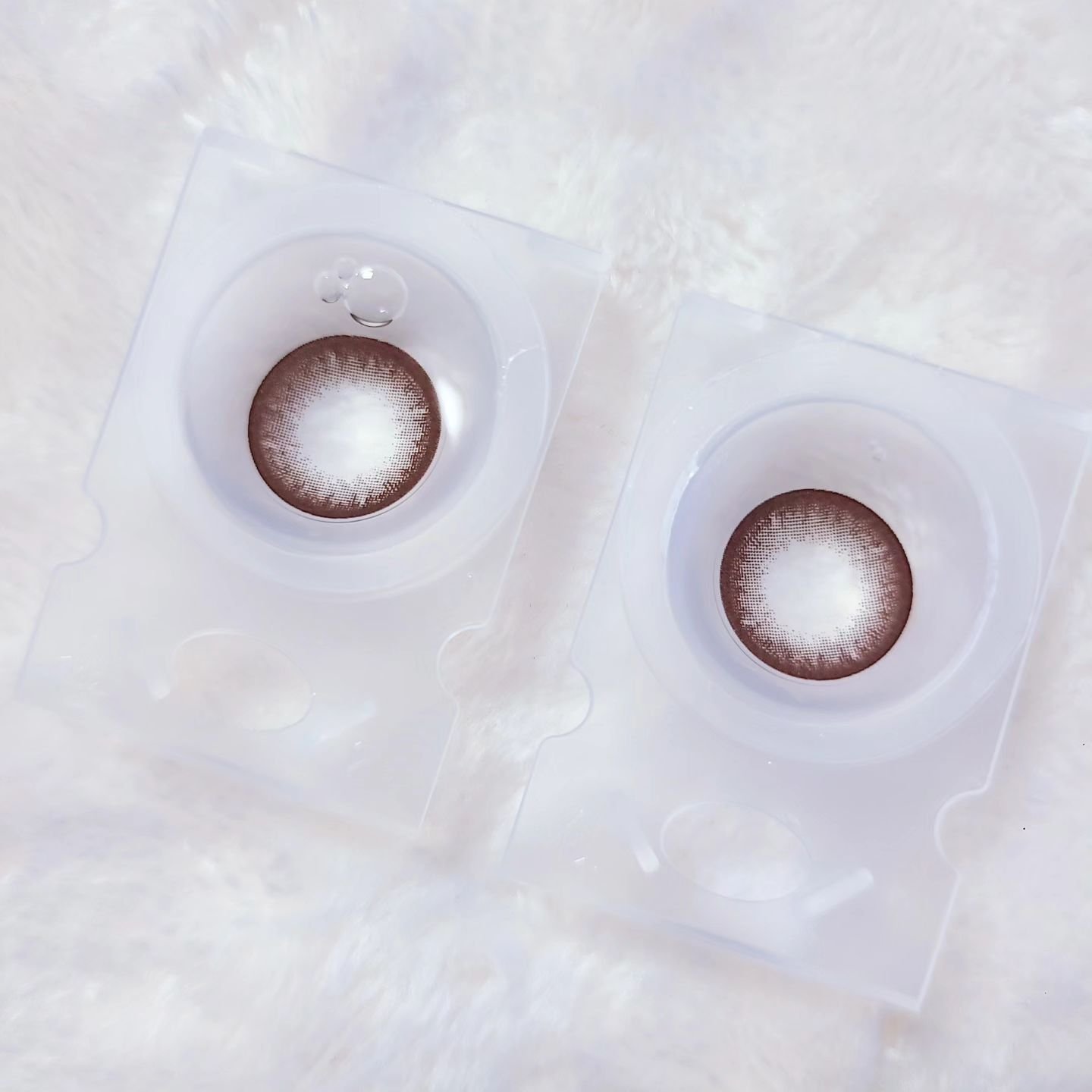 チョコレート🍫のような色合いで、吸い込まれそうな可愛らしい瞳にしてくれるカラコン👀✨️ 大きめサイズのカラコンで、ハッキリとしたフチで白目を綺麗に見せてくれるのと😍 お人形さんのようなくりくりとしたドールアイにしてくれます♡♡