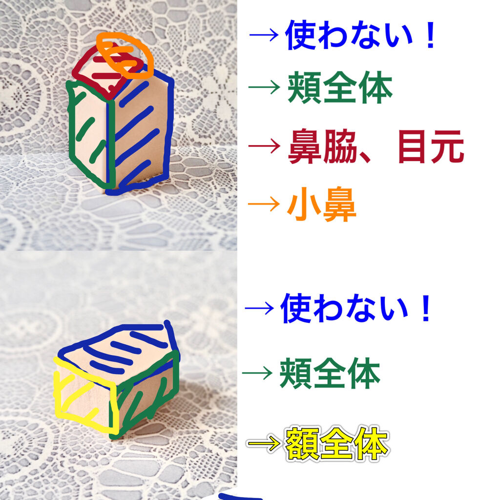 凸型ブラシは、パウダーアイシャドウをアイホールに塗る時やコンシーラーでニキビ跡等のポイントカバーをする時にオススメで、極小平ブラシは、パウダーアイシャドウの締め色を目のキワにのせる時や涙袋メイクにオススメだそうです! 皮膚の薄い目周りに使うブラシは、肌触りが良いものが絶対条件!418円なので期待してなかったのですが、肌触り柔らかで、アイシャドウやコンシーラーを綺麗に塗れました! 凸型ブラシは、細かいシミやニキビを隠すコンシーラー、極小平ブラシは涙袋メイクに最適でした!指で塗るより薄く自然に塗れるのでよかったです!!
