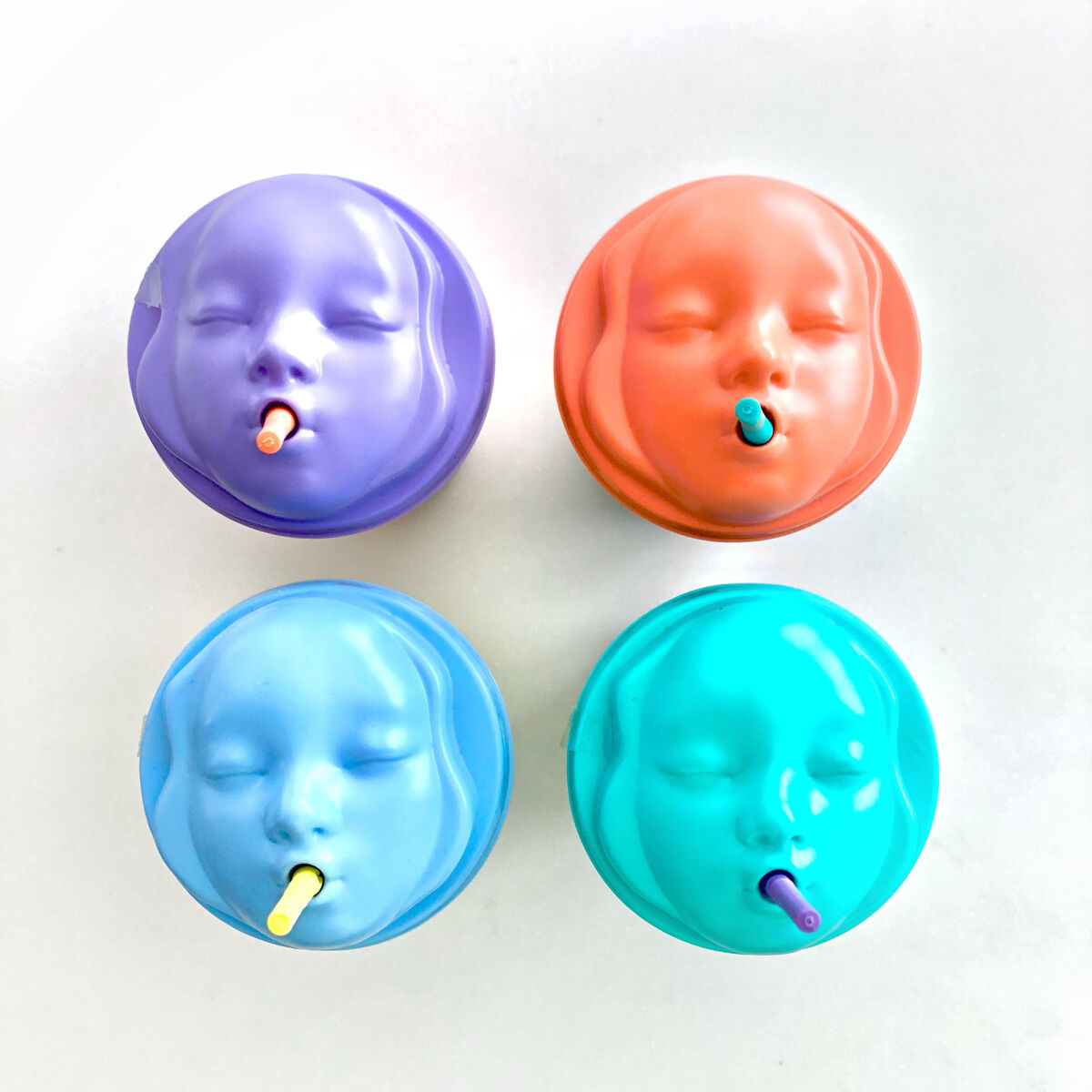 Dr.Jart+シェイキングラバーショット♯ルミナスショット(グリーン)…ブライトニング、トーンアップ♯弾性ショット(オレンジ)…弾力、肌のキメジュースのような見た目とは違い、凄い速効性の高いモデリングマスクになります。🍹カップのフタが人面に...