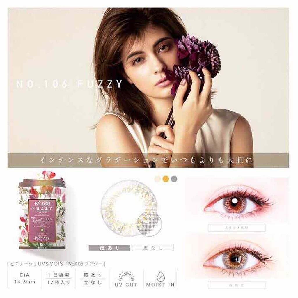 ピエナージュから瞳に優しいUVカットとうるおい成分が特徴のUVMワンデーから新色が発売されましたお試しさせていただいたのでレビューします✌🏻💕☑︎ピエナージュUV&モイストNo.106ファジー(DIA14.2mm着色直径13.6mm)(ワンデ...