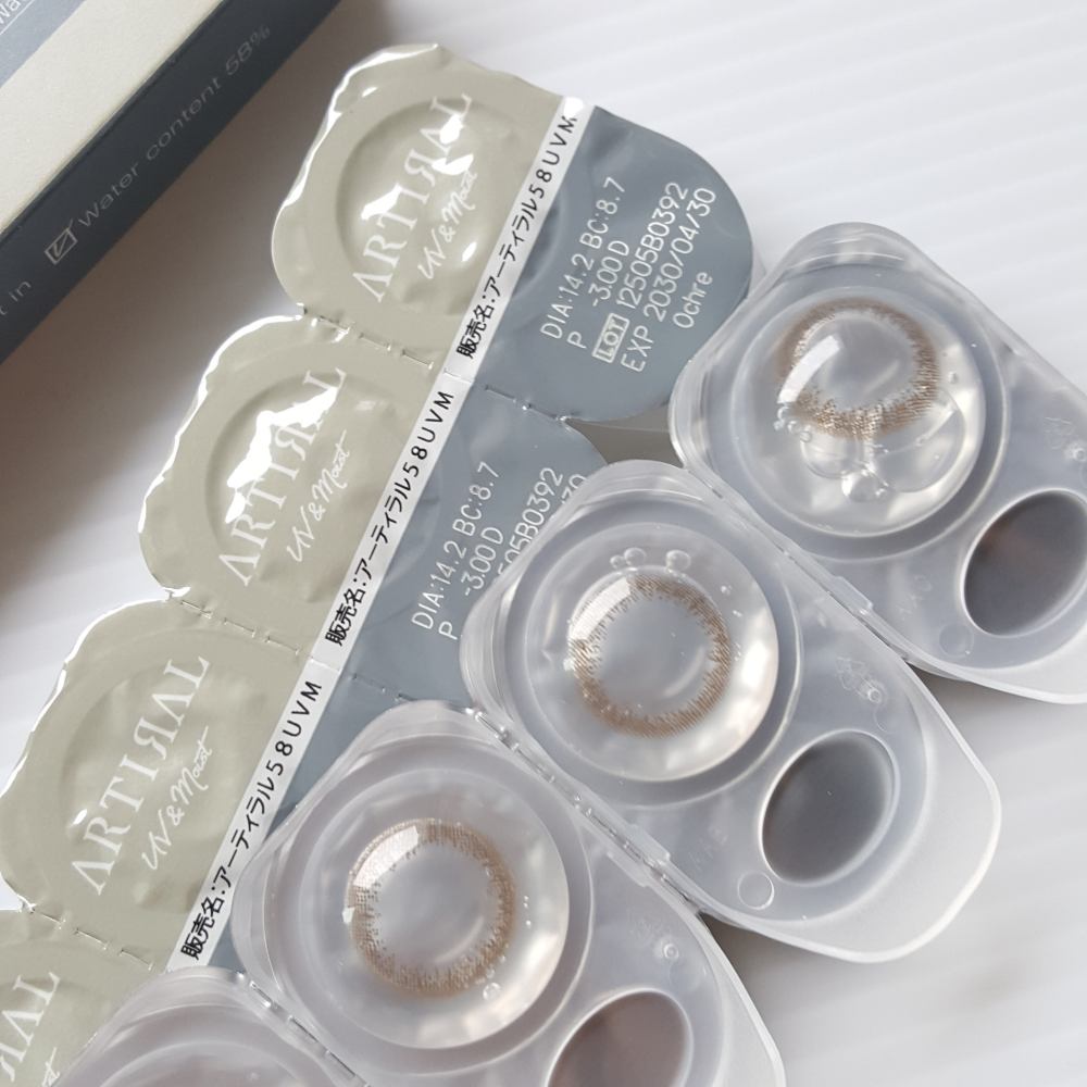 - 【エレガントな艶ブラウン】 [DIA:14.0mm・着色外径:13.2mm] 落ち着いた色味がちょっとだけ瞳を大きく。 瞳本来の美しさを引き立てるデザイン 人気のナチュラルレンズ「アーティラル」から、モイスト成分・UVカット機能を追加した、「アーティラルUV&モイスト」が登場。 レンズデザインはそのまま。 毎日使える優しい装用感で瞳の健康をサポートします。 ■モイスト成分配合 潤い成分のNPCポリマーがレンズの潤いを保ちます。 ■UVカット 紫外線UV-Aを90%以上、UV-Bを99%以上カットします。 ■瞳に優しいレンズ構造。 サンドウィッチ製法。色素が直接瞳に触れない製法を採用。 透明なレンズ素材で色素がサンドウィッチされた構造で、色素が直接目に触れることはありません。 ■着け心地に配慮した低含水 水分蒸発が少なく、目が乾きにくい含水率38%の低含水レンズです。 ■汚れがつきにくい素材 アーティラルは、汚れが付着し難い非イオン性素材を採用しました。 1日中クリアな視界を保ちます。 ■清潔に使える1Day タイプ 瞳のために清潔で快適に過ごせる一日使い捨て。 面倒なレンズケアも必要ありません。