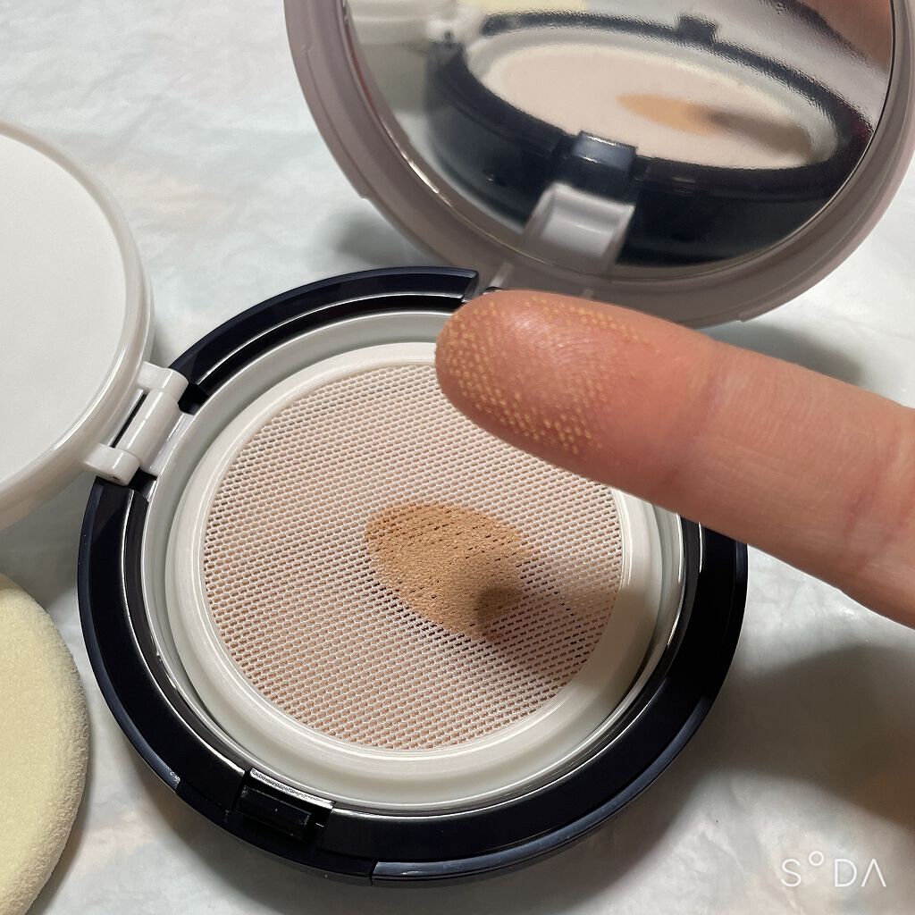 クッションファンデよりは固いけど パウダーファンデよりは柔らかい 不思議な感触でした👀 塗ってから数十秒ほど経つと ペタッとした質感からさらさら質感になります🙂 マスクにほとんどつかなかったです!✨ カバー力はそこそこあり、保湿感はバッチリで 普段使いには良いなと思いましたが 定価なら買わないかなと思った💦