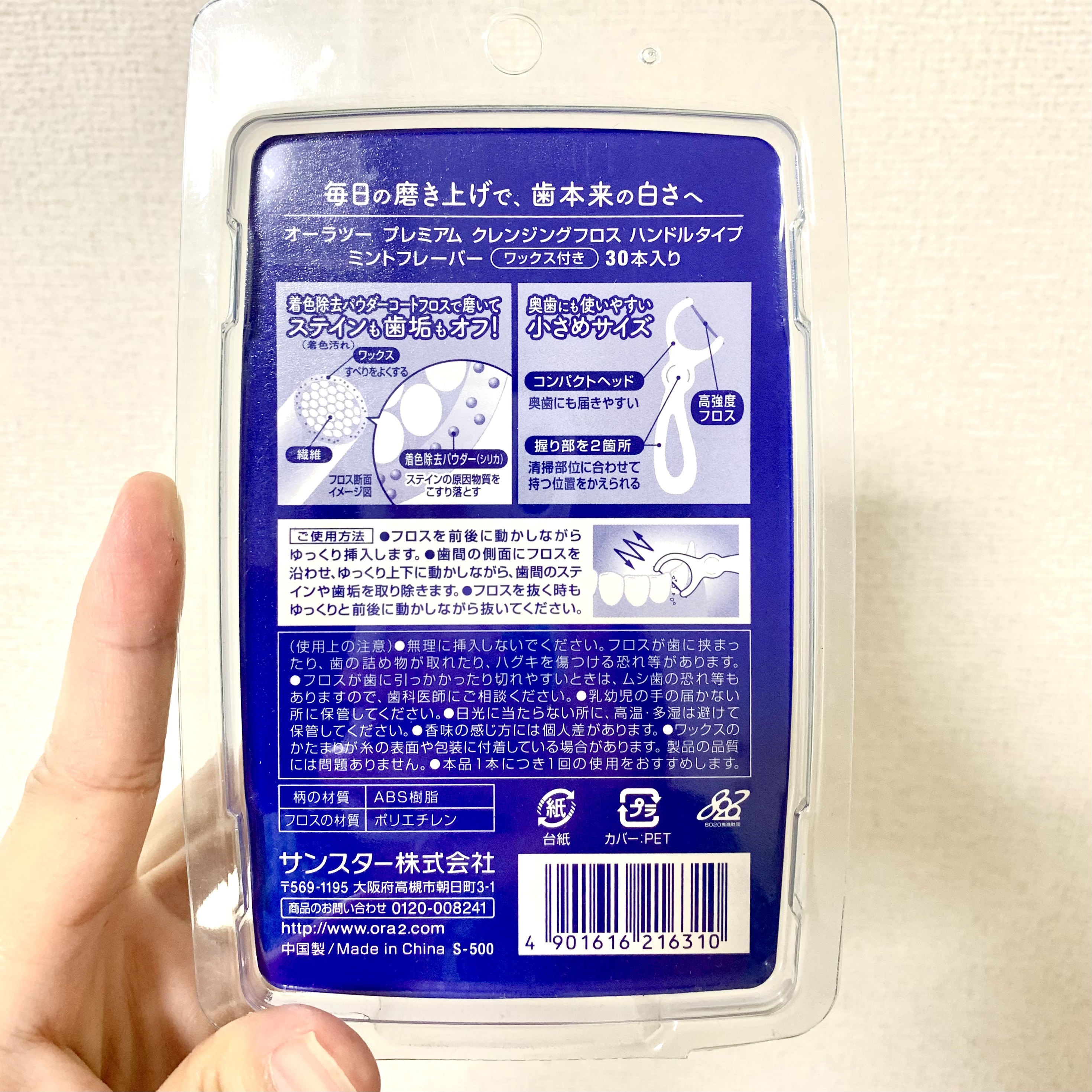 オーラツープレミアムクレンジングフロスハンドルタイプミントフレーバーサンスターさんのプレゼントキャンペーンにていただきました!#提供_オーラツー#提供クレンジングのできるフロスで歯間を磨き上げるフロス!脱マスクで以前よりももっと口元のケアを気にするようになって今まで気づかなかった歯と歯の間のステイン汚れが目に入るようになってしまいました💦脱マスクで口臭も心配になるところ!!フロスを使うのは大事ってよく聞くけどなかなか習慣的には使っていなくてこの機会に使ってみることに☺️小さめサイズのハンドルタイプ!小さいので、奥の方にも届きやすかったです!コンパクトなので、ジップに入れて小分けにしとけば出先にも使えちゃう🙋♀️以前スティック型の(使いたい分だけ切り取る)フロスを使っていたけど、使いこなせなかったので初めての人やスティックタイプが苦手な人はハンドルタイプおすすめです!!30本も入ってるのでかなり使えました!フロス自体にミント系のフレーバーが付いていてミントの爽やかなさっぱりとした香り🌱フロス後の歯(歯間)もミントのスッキリ感がでて普段の歯磨きだけよりも爽快感を感じました👏!フロスの部分に着色除去パウダーをコーティングされているみたいです!コーヒーなどカフェイン大好きな方にはおすすめ✨歯磨き後でもフロスすると汚れが取れるので今まで怠ってたけどフロス大事だなと感じました😂歯間の磨き残しで、着色汚れの原因にも口臭の原因にもなるので気をつけようと思います!今後は歯磨きでは落としきれない歯間の汚れをフロスを使って磨き上げていこうと改めて実感しました〜✨歯磨き後の仕上げに!食事後のケアに!習慣にしていきたいです!使用感はすごく良かったけどただ一点、入れ物が嵩張る。ジッパーだったりすると収納が楽だなと感じました💦#オーラツー#歯磨き#歯ブラシ#歯間ブラシ#フロス