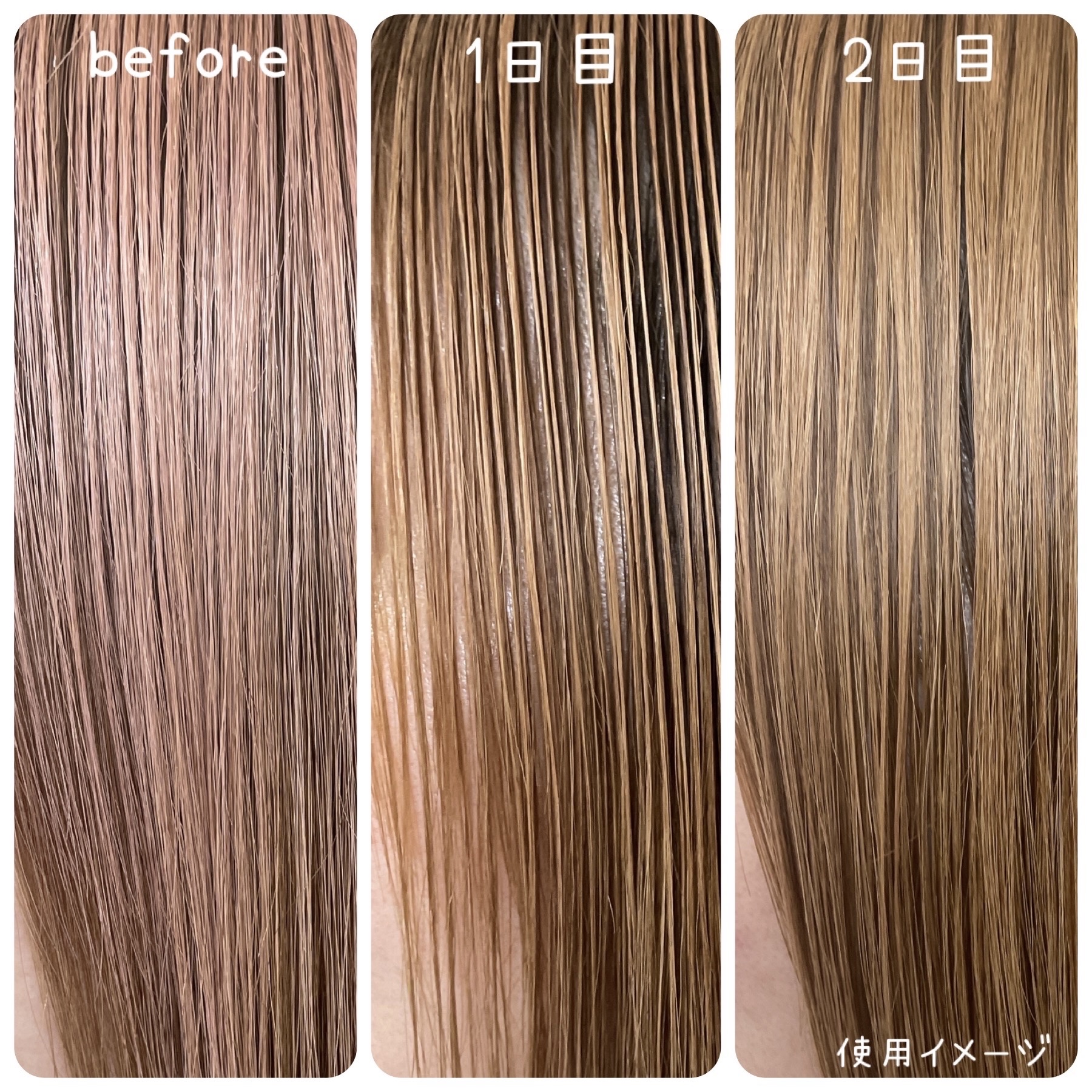 前回ピンクを使って良かったので、今回はベージュにしてみた❣️ 一回でも綺麗に染まったょ😊 乾いた髪の毛にトリートメント塗って10分放置 だけど、ベージュは思ったより黄色味が強めな染まり感😅 もともとブリーチの黄ばみが出てきてるので これはドンキ限定?気になってた🤭 4種類あったょ❣️ また使ってレビューします🫡