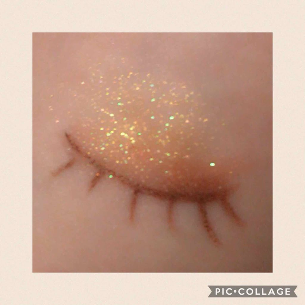 偏光グリーンのキラキラなラメがかわいいです🌿 粒が大きいためラメの粉飛びはしやすい印象です。 少し載せるだけでも目立つのでメイクのアクセントに使えるアイシャドウです✨
