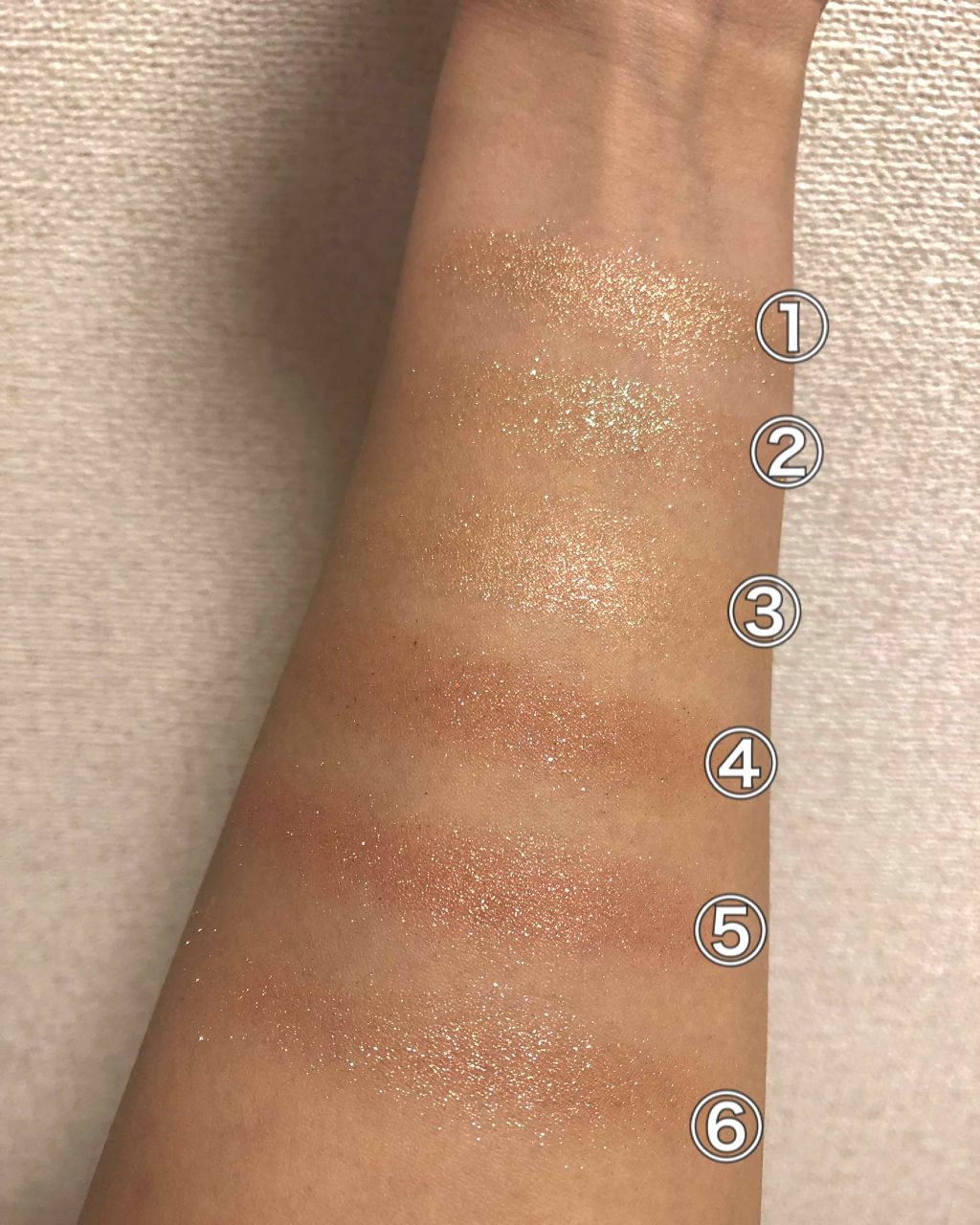 Qoo10購入品オピュクチュールアイシャドウ①No.12CONFETTIPOWDER②No.13RETROPUNK③No.18PEPLUM(メルティド)④No.19HIGHFASHION(メルティド)⑤No.28FRINGE⑥No.29TWI...