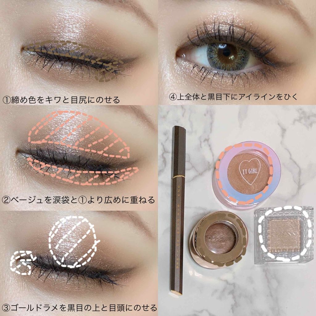 ☆ダイソー イットガールアイシャドウ思わせぶりキラキラなゴールドのアイシャドウです⭐️発色は淡くラメも派手すぎず、ナチュラルにまぶたに色付いてくれると思いました((´๑•ω•๑))こちらのアイシャドウとブラウンのジェルライナーで目元を仕上げる...