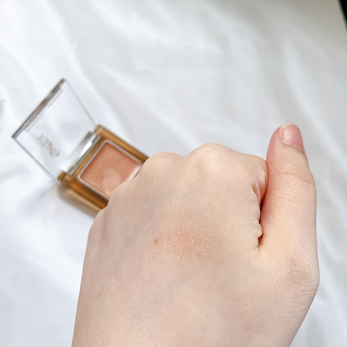 色味が絶妙で、ナチュラルなベージュブラウンですが、茶色すぎずオレンジ味を感じるシナモンチャイのように発色しました。 体温で溶けるようなテクスチャーで目元に密着します✨ 朝から晩まで、雑に目を擦ったりしてもほとんど落ちていませんでした😳😳 シアーなので、ナチュラル発色からしっかり発色まで、塗り重ねるほど色んなニュアンスでアレンジができます!