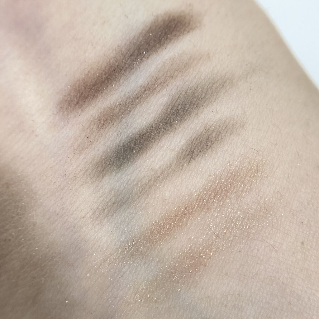 暗めの髪色の人や寒色系アイシャドウにぴったり抜け感あるアイブロウ▼#Celvoke#インディケイトアイブロウパウダー04カーキブラウン去年の夏にドルガバのエメラルドグリーンのアイシャドウを買った時に、眉は赤系かただのブラウンしか持ってないことに気付いて、ちょっと暗めの04を購入。髪の色は赤系にしてることが多いので、アイブロウパウダーはANNASUIの01使うことが多いですが、アイシャドウを寒色系使った時や髪の色を暗めにした時はこれをよく使う。今は比較的暗めの色なので1番使ってます。付属のチップでラフに描くのをお勧めされましたが、眉はキリッとビシッとのほうが好きなので、手持ちのアイブロウブラシを使用。見た目ほど暗くなくて、1番下のベージュが細かくキラキラっとしてるので、中央グリーンをメインで使って上のブラウンは眉尻に使って、最後に全体にベージュを気持ち濃いめに重ねるのが1番よくやる使い方。元々眉は割としっかりめにあるので私はこれだけでも事足りますが、眉描く時は最初に明るめの色でガイドライン書いてからパウダーのせてます。特に眉尻。で、やっぱりこのアイブロウより髪のほうが明るめな時もあるので眉マスカラで明るめにしたり、手持ちのマット系のアイシャドウを重ねることもよくある。ブラウンとグリーンを混ぜるとキリッとなるのがお気に入り。この色使う時は普段よりも形しっかり整えて、眉下ハイライトもちょっと強めに入れてることが多めグリーンもそこまで緑ではないのとブラウンが使い勝手のいい色なので、ブラウンだけ使うこともあったり色々。秋冬に使いたい色。髪暗めの人のほうがしっくりくる色だと思いますが、眉マスカラを明るめの色使ったり、1番下の明るいカラー混ぜると案外しっくりきます混ぜる時はアイブロウブラシよりチップのほうがいいなと思ってます。最後2枚はこのアイブロウ使った時のメイク写真。案外そこまで暗くならないです。キラッとするのがお気に入り。案外持ちもいいです#眉メイク#アイブロウ#アイブロウパウダー#セルヴォーク#デパコス#アイブロウ_デパコス#正直レビュー