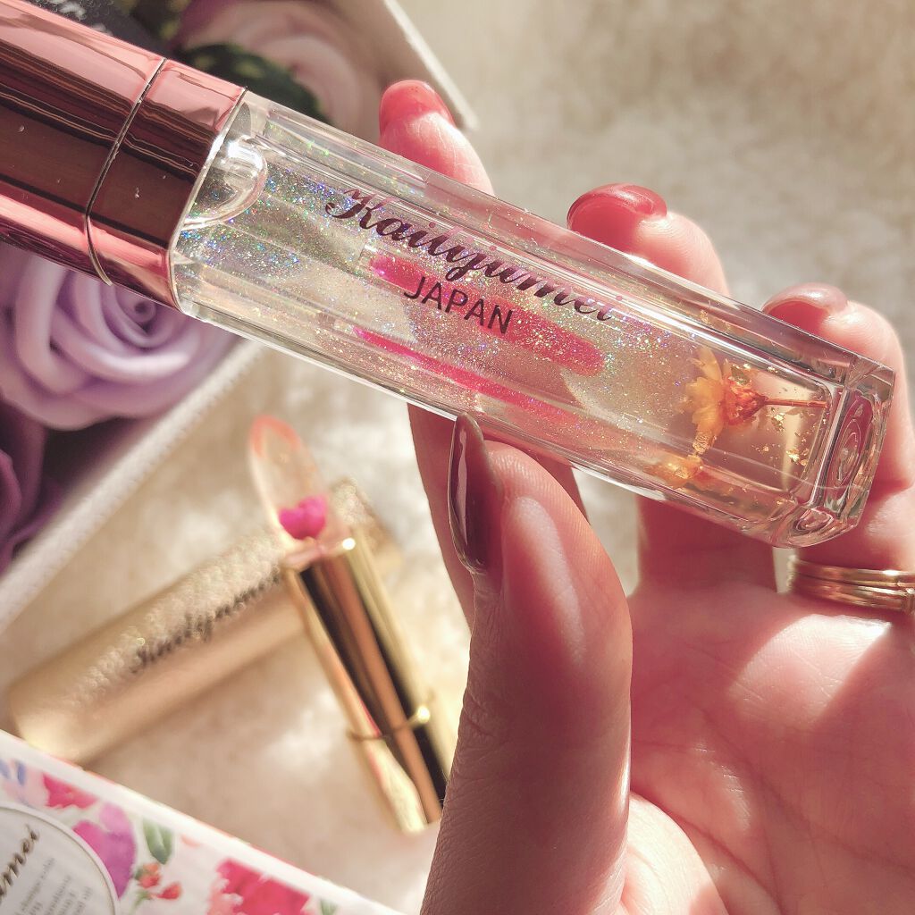 🌼Kailijumei🌼フラワーリップグロス🌼オレンジラメ🧡カイリジュメイ💕パケ買いですね😂見た目が良いのでプレゼントにも🎁透明ラメですが、唇に乗せると青みピンクっぽい発色!どれくらい塗ると、どれくらい発色するのかが難しいです💦密着力もありま...