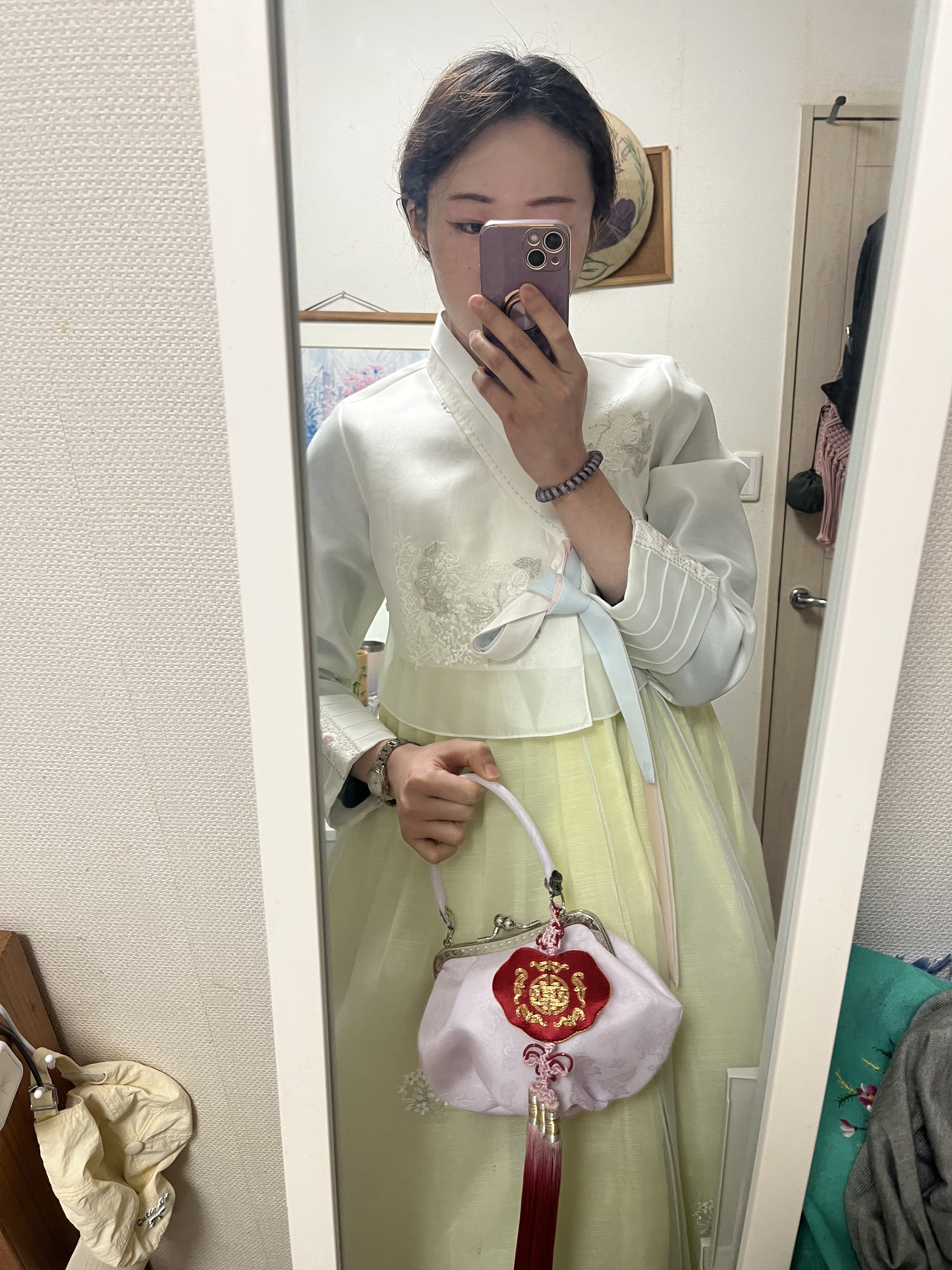#アオザイ#한복#民族衣装#チャイナドレスÁodài→ピンクも持ってます。ダイエットした結果、緑のアオザイはウエストがブカブカになったので手放しました。ハンボク=韓服=한복(ピンクと緑はレンタル)(レモンイエローの한복は自宅まで海外発送を+1...