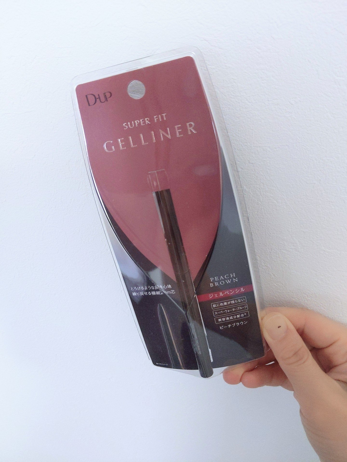 ⌘D-UPスーパーフィットジェルライナー ピーチブラウン持っているアイライナーも何本かあるのですが、ピンク系のメイクの時に合うものがなかなかなく…ドラッグストアで見つけて、ピーチブラウンというのを見てこれだ!と思い購入しました😊若干赤みがある...