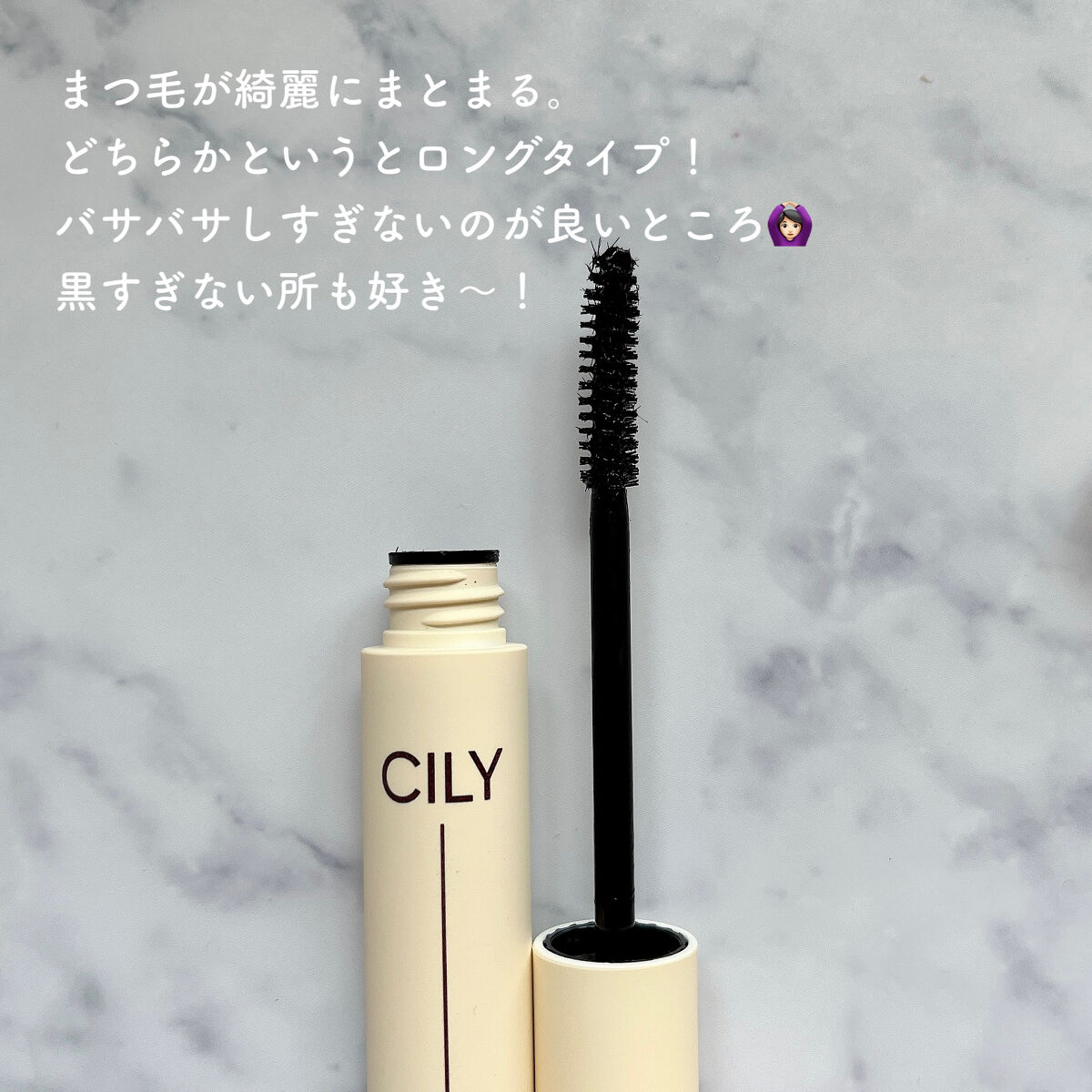 まずシンプルでCILYらしいオシャレなパッケージ♡ まばらで印象の薄いまつ毛がぎゅーん!と伸びてきれいにセパレート♪一気にインパクトのある目元にしてくれます☆ カールキープ力もしっかりあって、ずっと上向きにセパレートまつげを保ってくれます。 ブラックはより印象的に、ブラウンは優しい雰囲気に仕上がってくれるので、その日のメイクや気分によって使い分けしています♡ まさに納得!の実力派でした♪